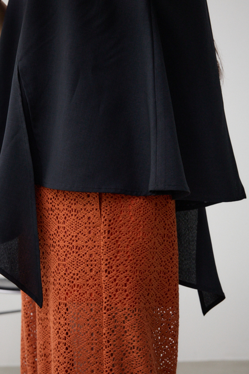 ■商品ディティール :そのまま着用するとアシメスリットデザイン、前を結ぶとタイデザインに、1枚で2通り楽しめるアイテムとなっています。
