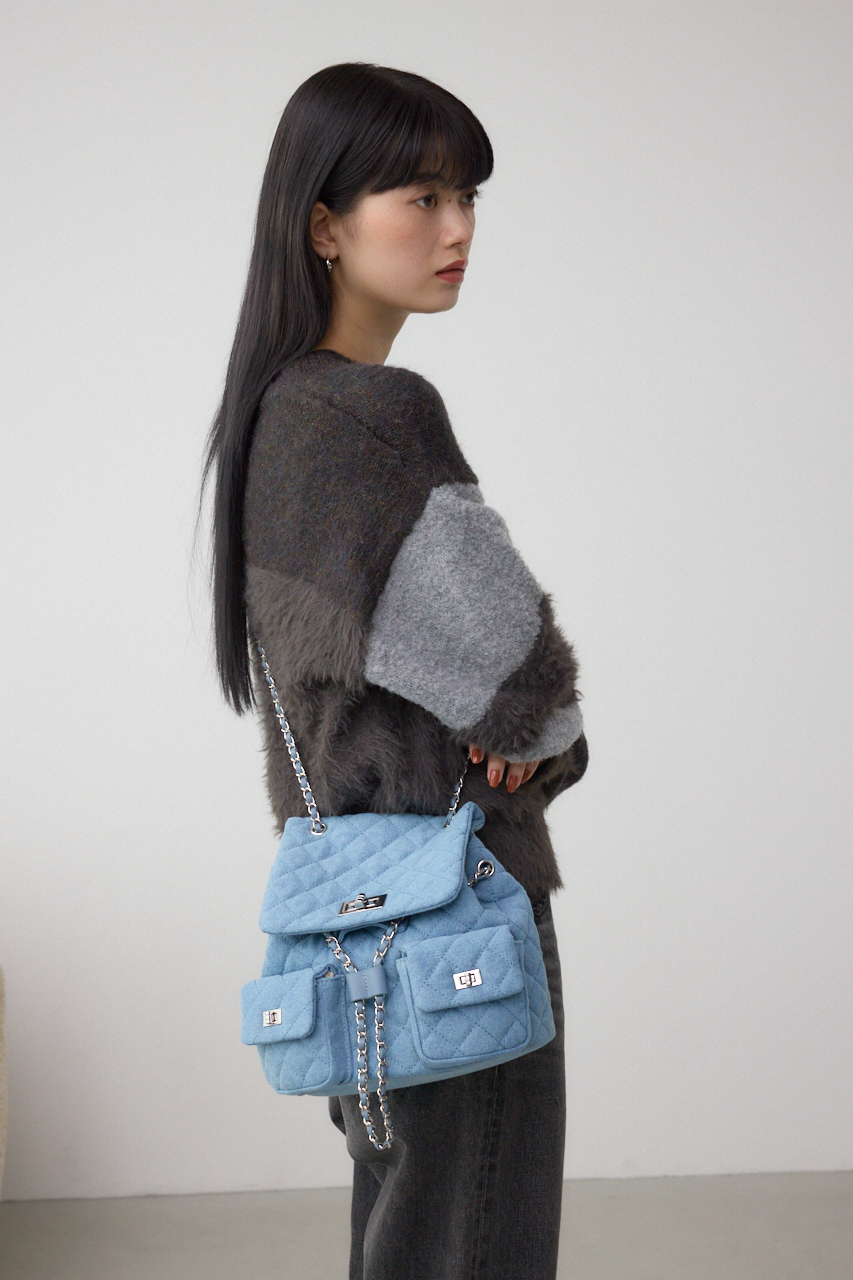 キルティング素材で上品な雰囲気に仕上げ、ブラックは表面感のある合皮生地で大人っぽい印象。