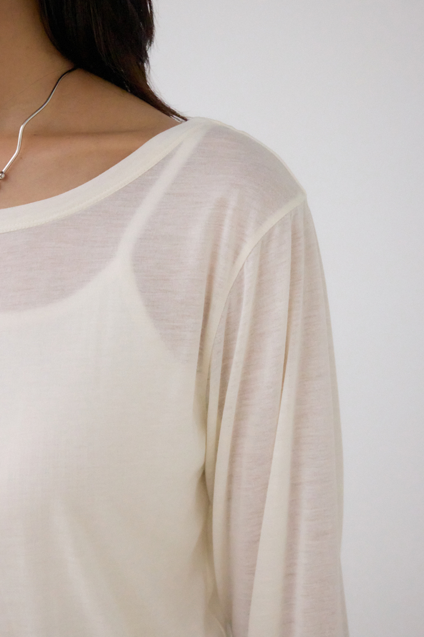 程よい透け感とフィット感が魅力で、今すぐ活躍するトップスです。