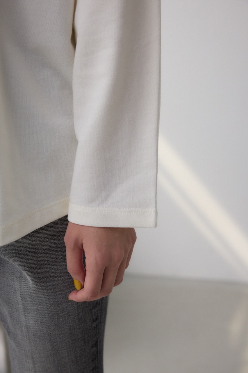 ポリエステルとコットンの混紡素材で、裏面のループが短いミニ裏毛のスウェット素材です。