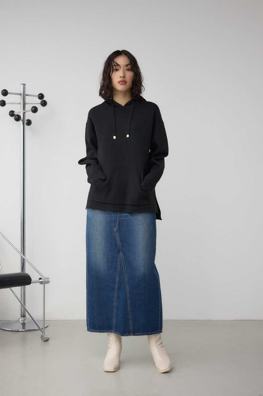 縦のラインをすっきり強調し、スタイルアップを叶えるストレートシルエットのデニムスカート。