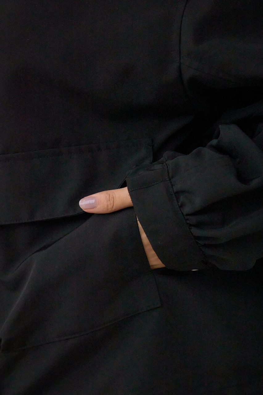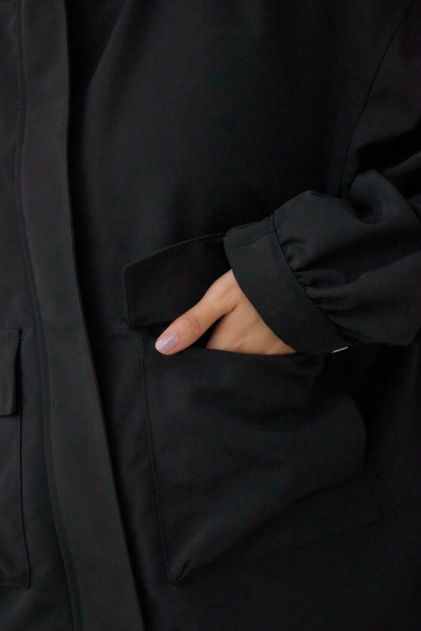 ゆったりとしたシルエットですが、ほどよく腰回りを覆う丈感にしています。