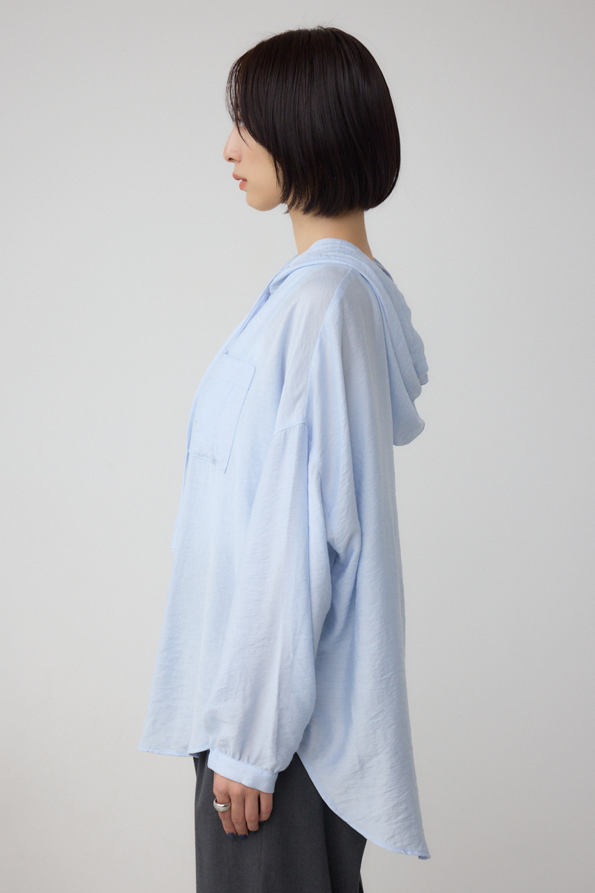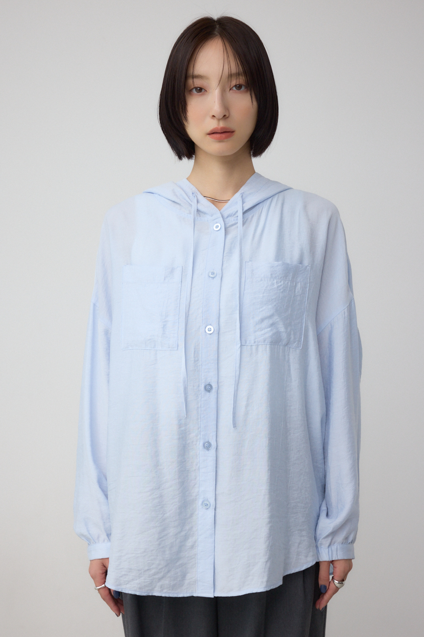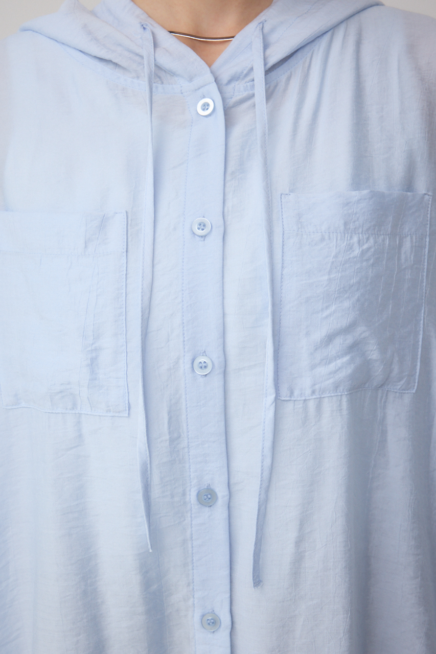 1枚着でも羽織としても使用できるフード付きシャツ。