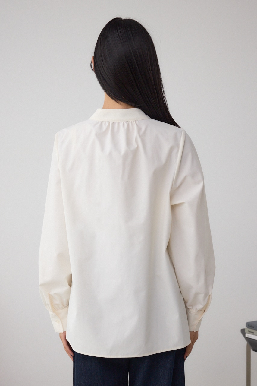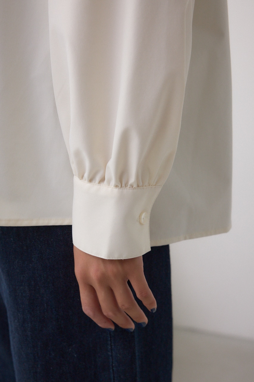 ふんわりとした袖に長めのカフスを施し、女性らしいかつ上品な雰囲気に。