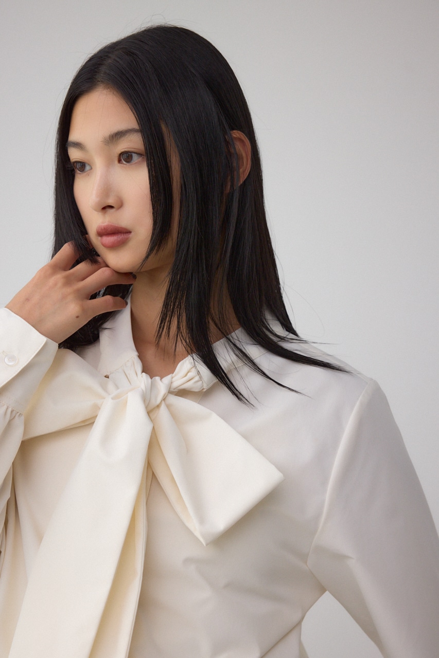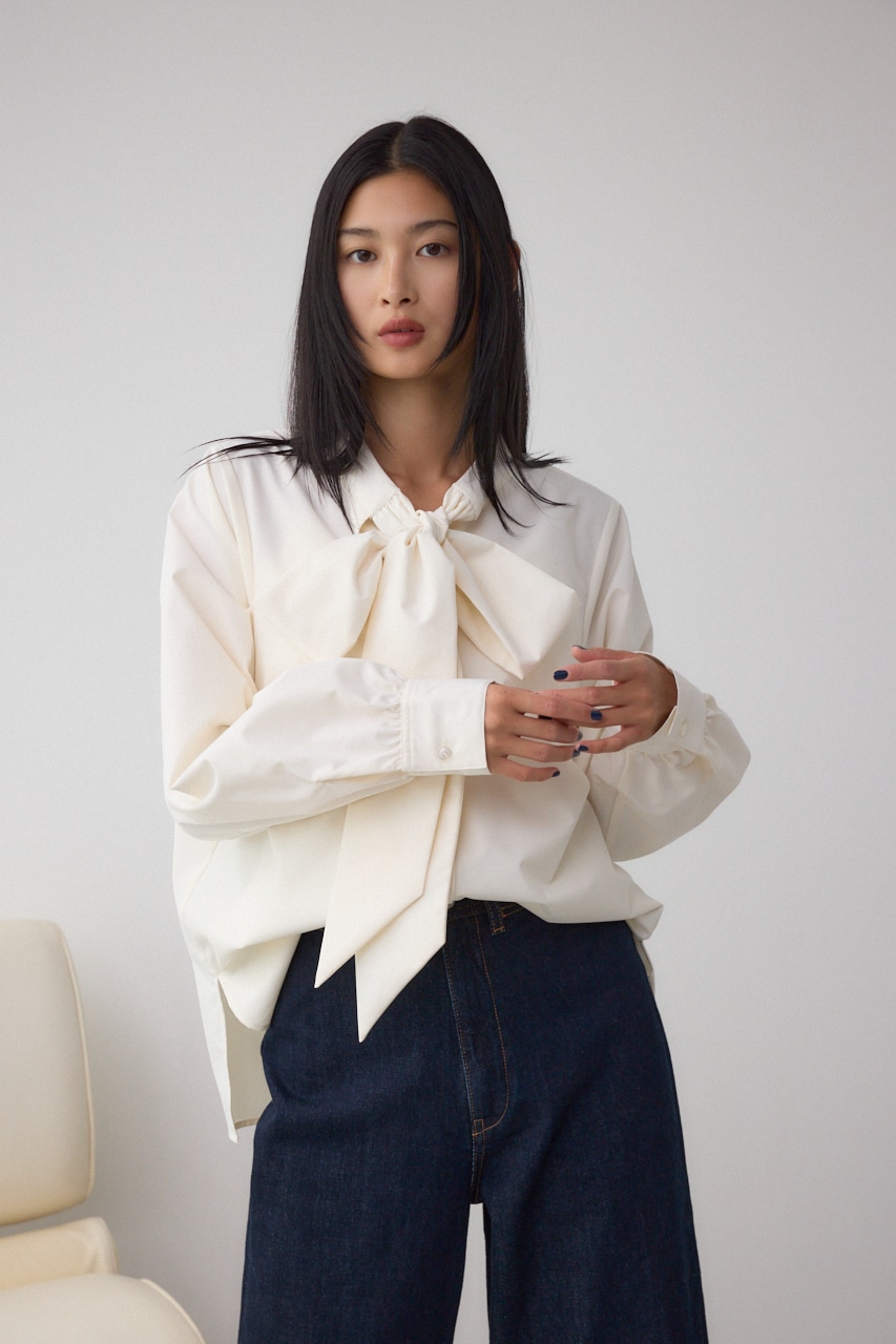 大きめなリボンが華やかさを添える、トレンドのボウタイブラウス。