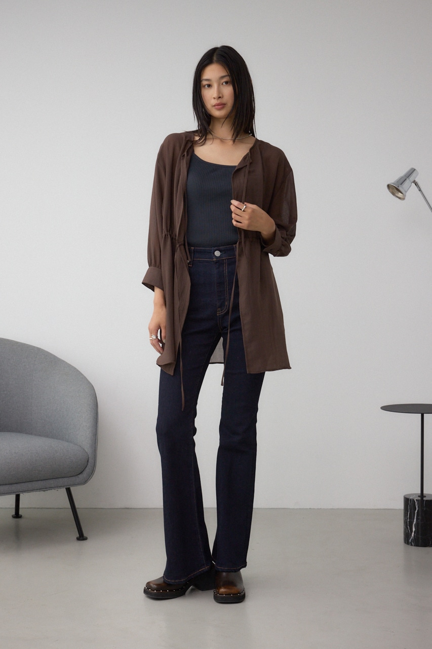 インナーにはタンクやキャミを合わせて、ボトムはスラックスなどと合わせれば、シンプルでこなれた着こなしに。