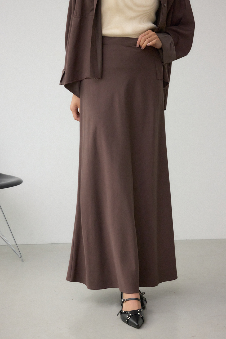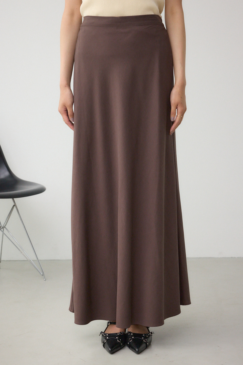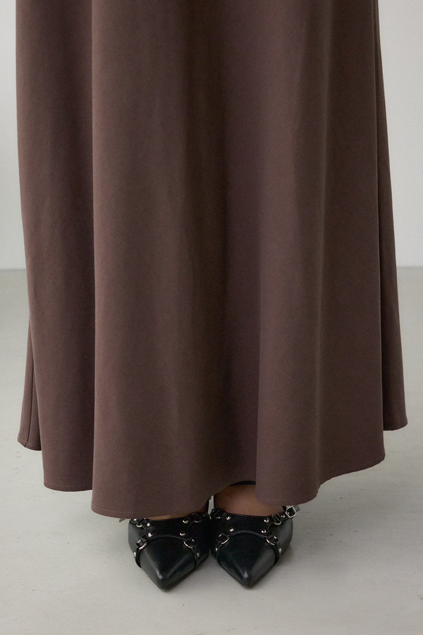 裾に向かってゆるやかに広がるセミフレアシルエットは、生地をバイヤスで使用することで、美しいシルエットを再現しています。