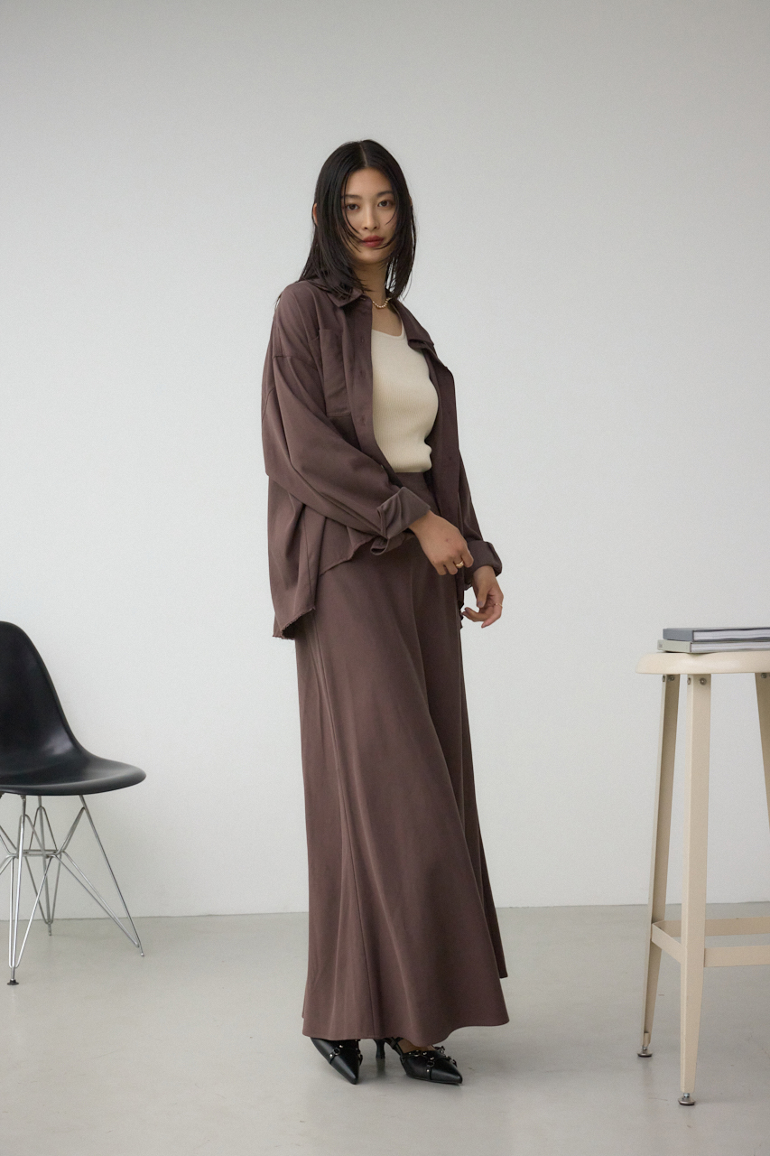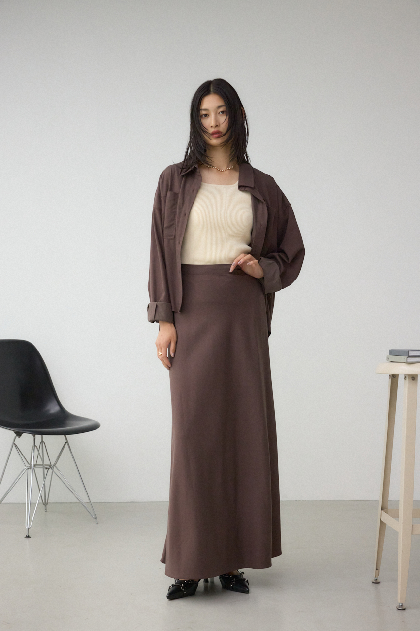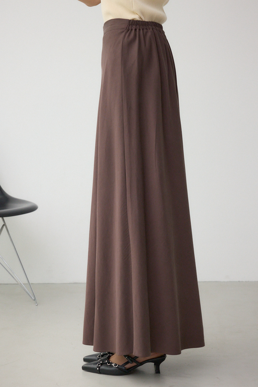 裾に向かってゆるやかに広がるセミフレアシルエットは、生地をバイヤスで使用することで、美しいシルエットを再現しています。