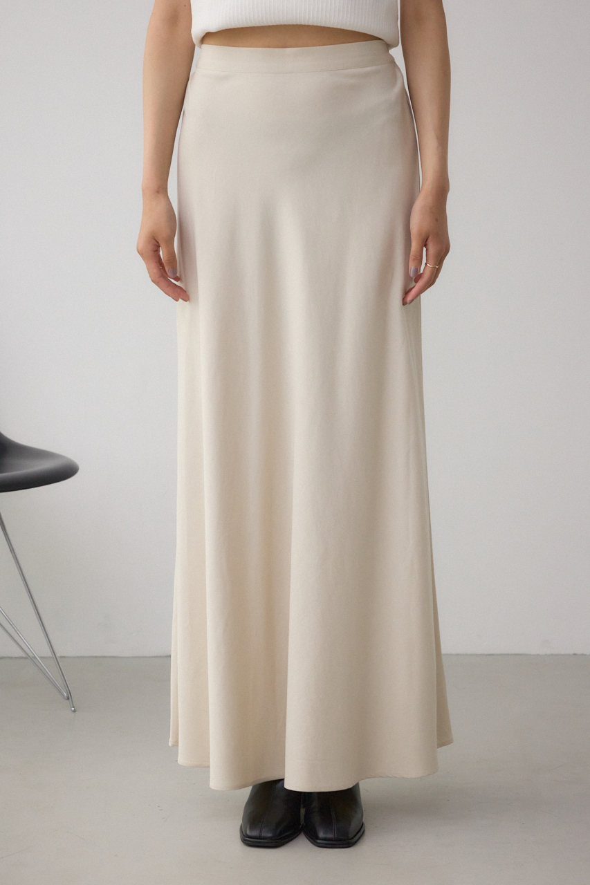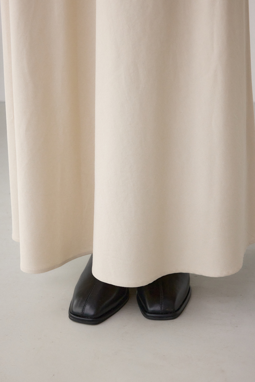 裾に向かってゆるやかに広がるセミフレアシルエットは、生地をバイヤスで使用することで、美しいシルエットを再現しています。