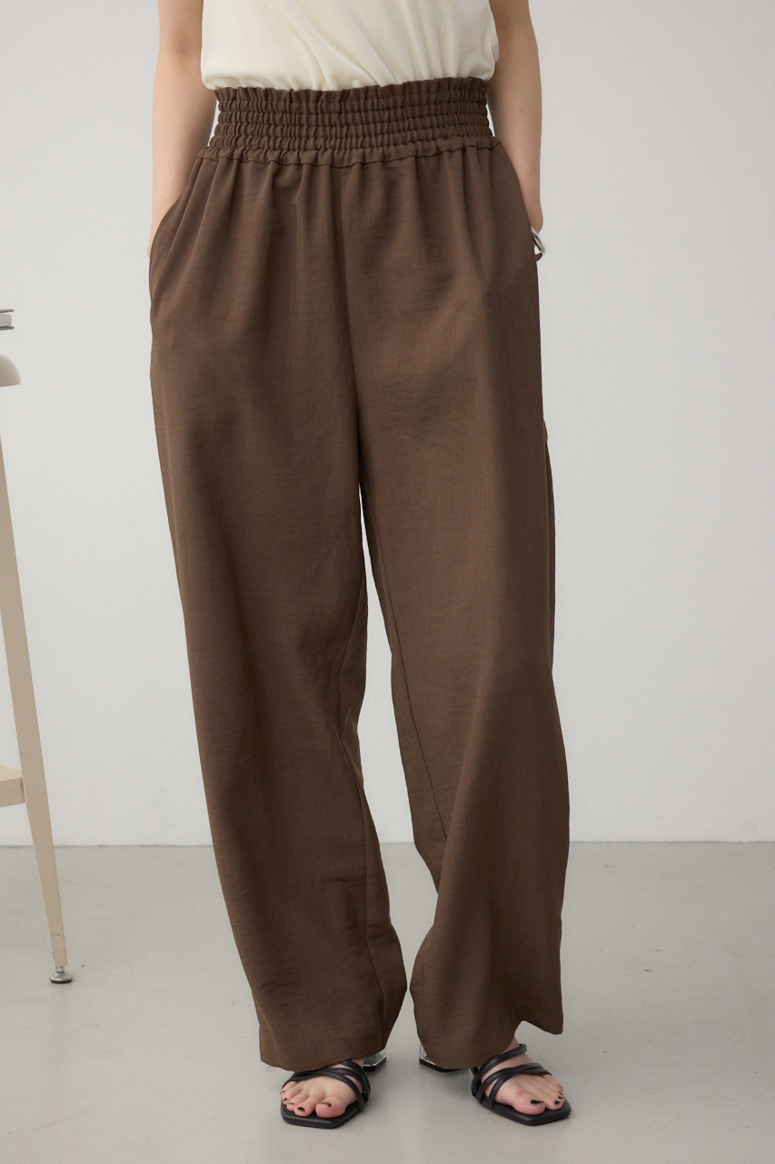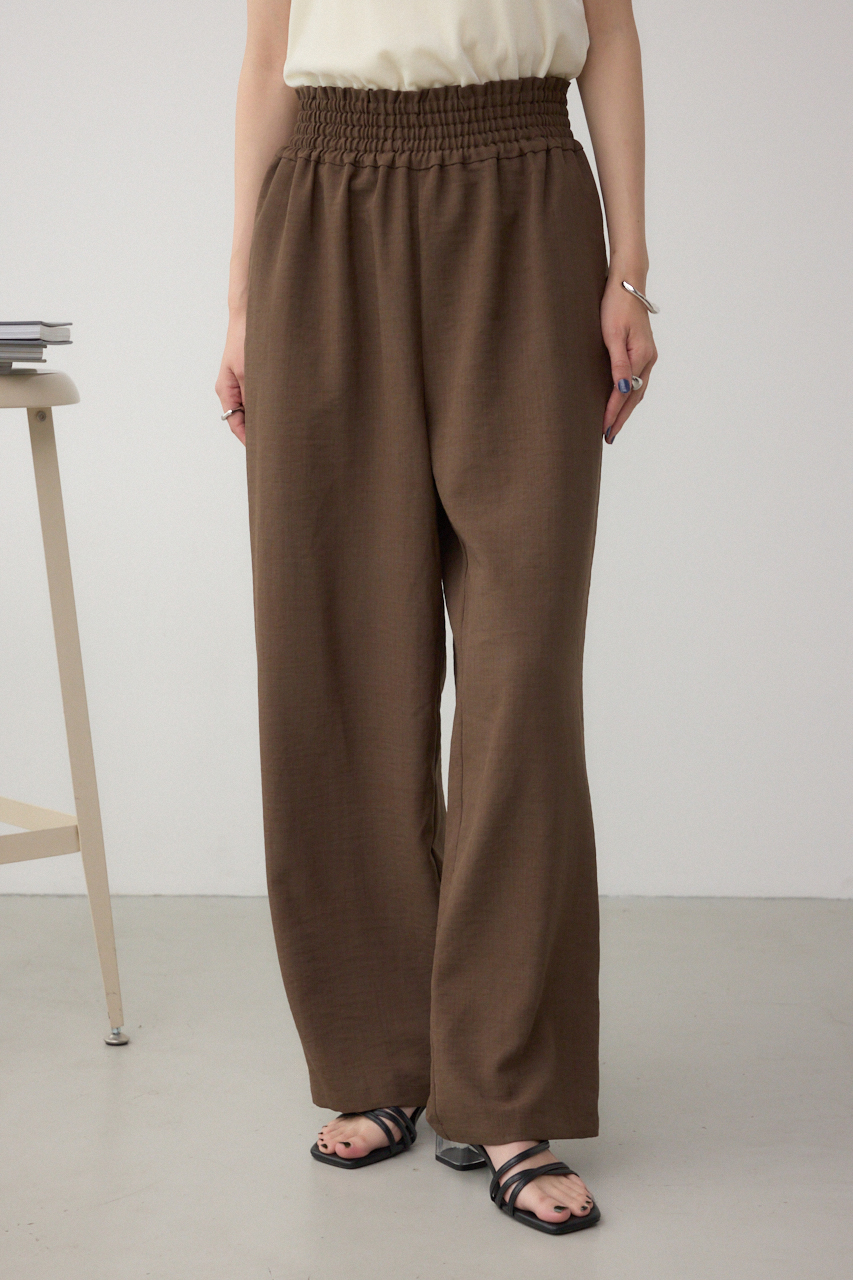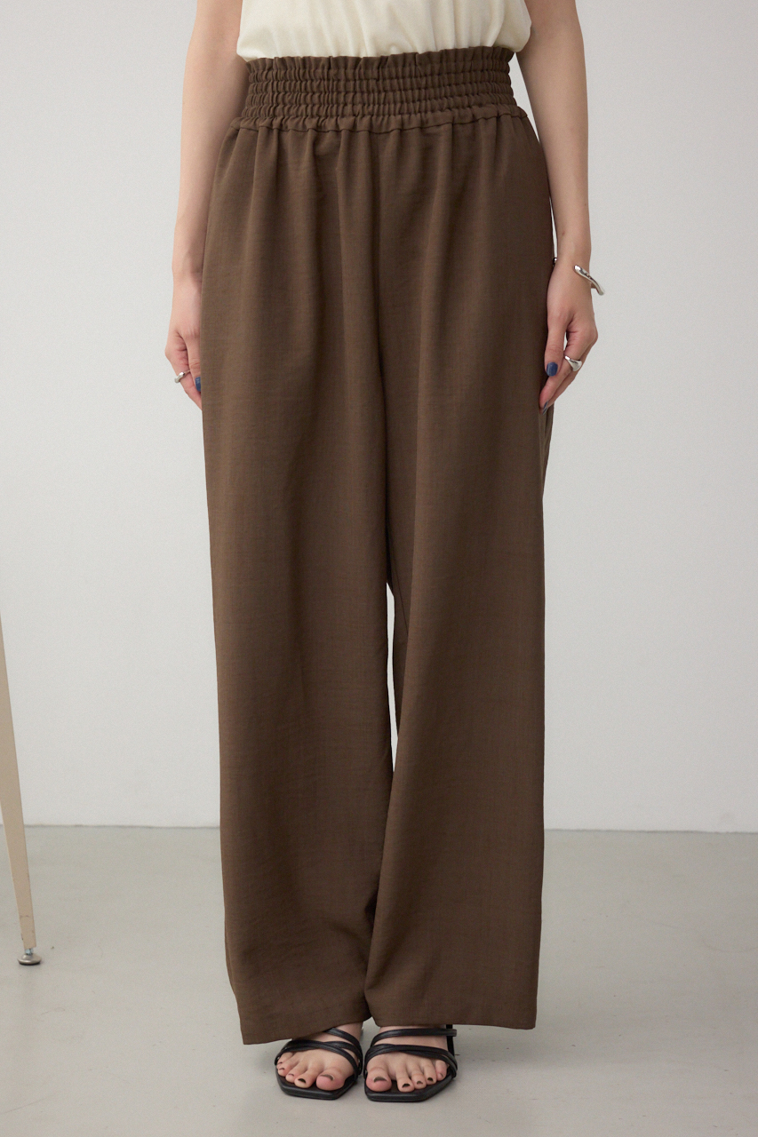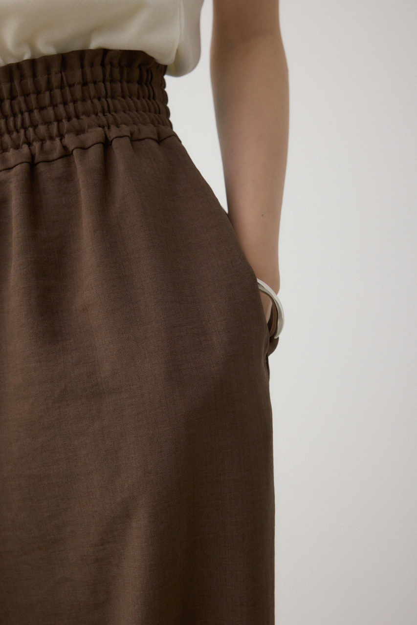 ウエストのシャーリングデザインがポイントになり、トップスをインしても可愛いデザインです。