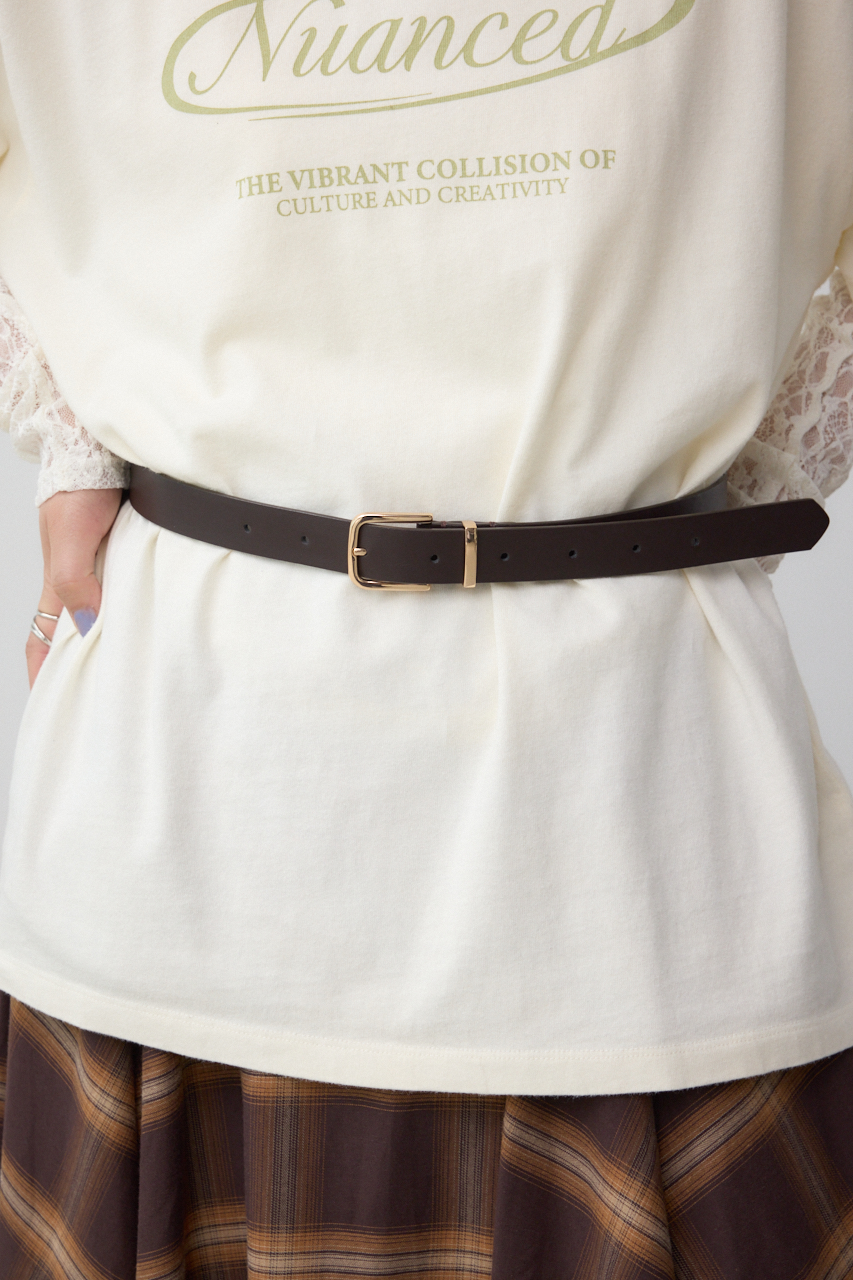 メタルループがさりげないアクセントになった、シンプルで洗練されたフェイクレザーベルト。