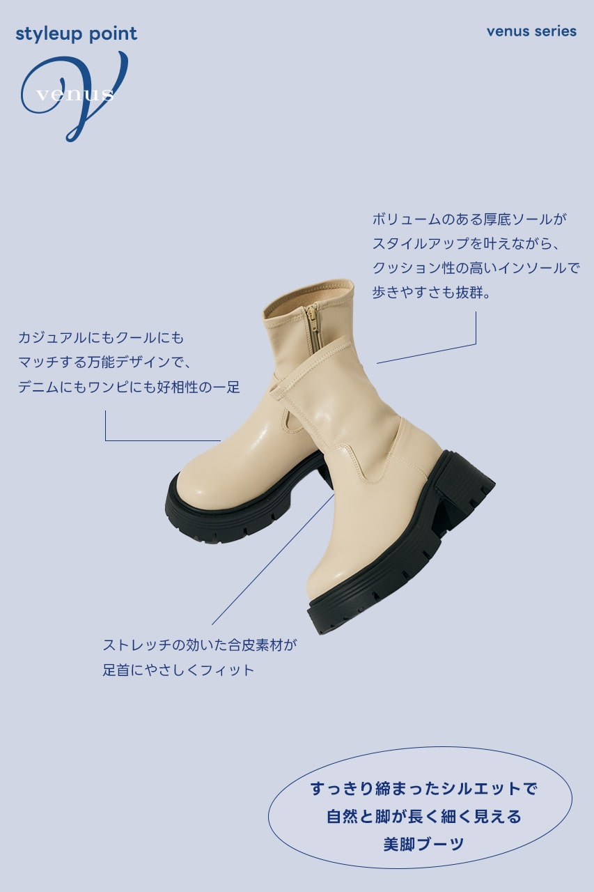 | 参考サイズ | ヒール高さ | ストーム高さ | 足幅 | 履き口まわり | ブーツ全長 | |