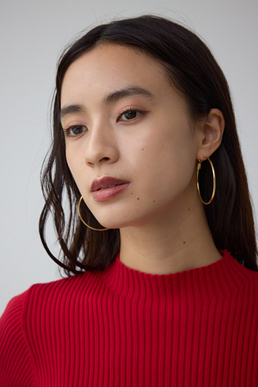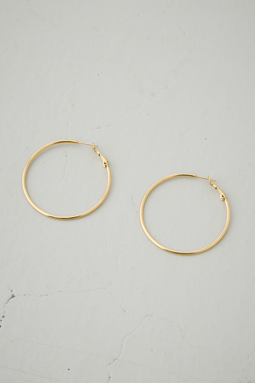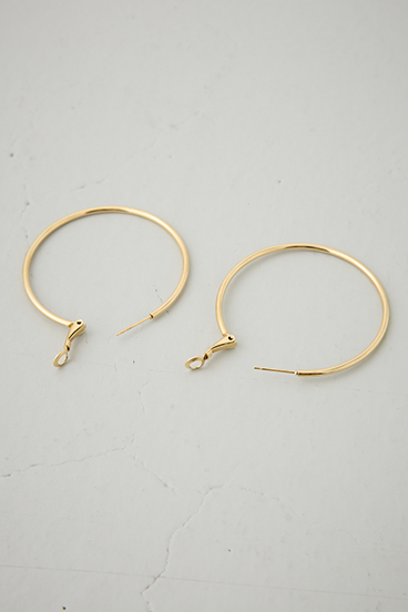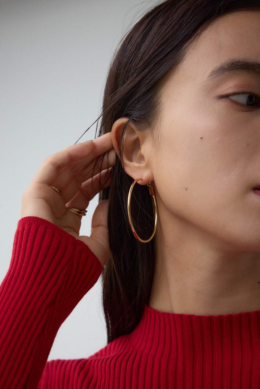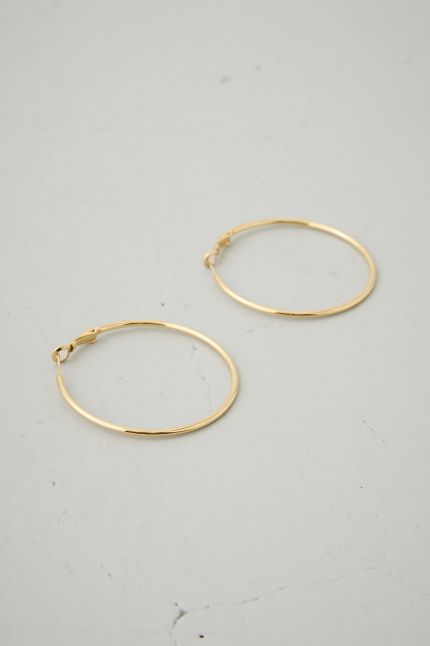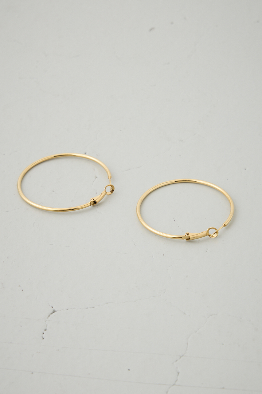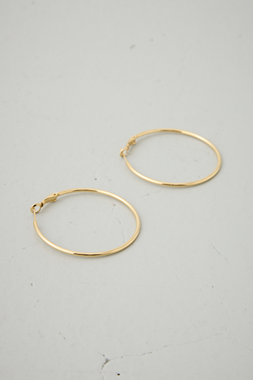 ツヤのあるプレーンなメタル素材を使用した、大ぶりサイズのフープピアス。