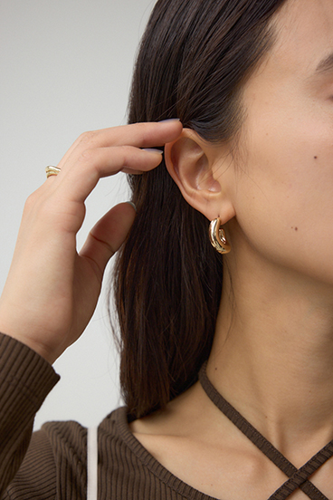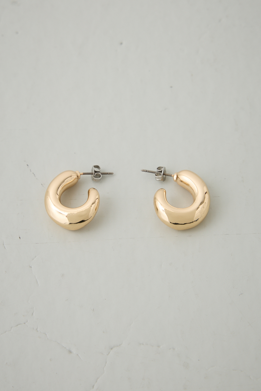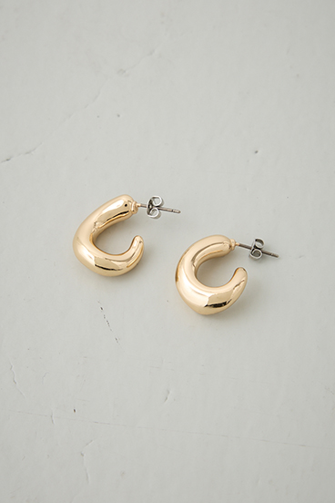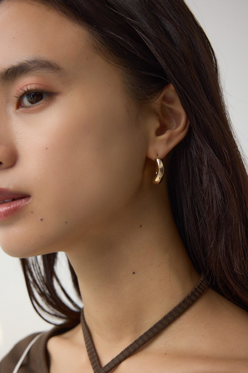 立体的で滑らかなフォルムが印象的な、メタルフープピアス。