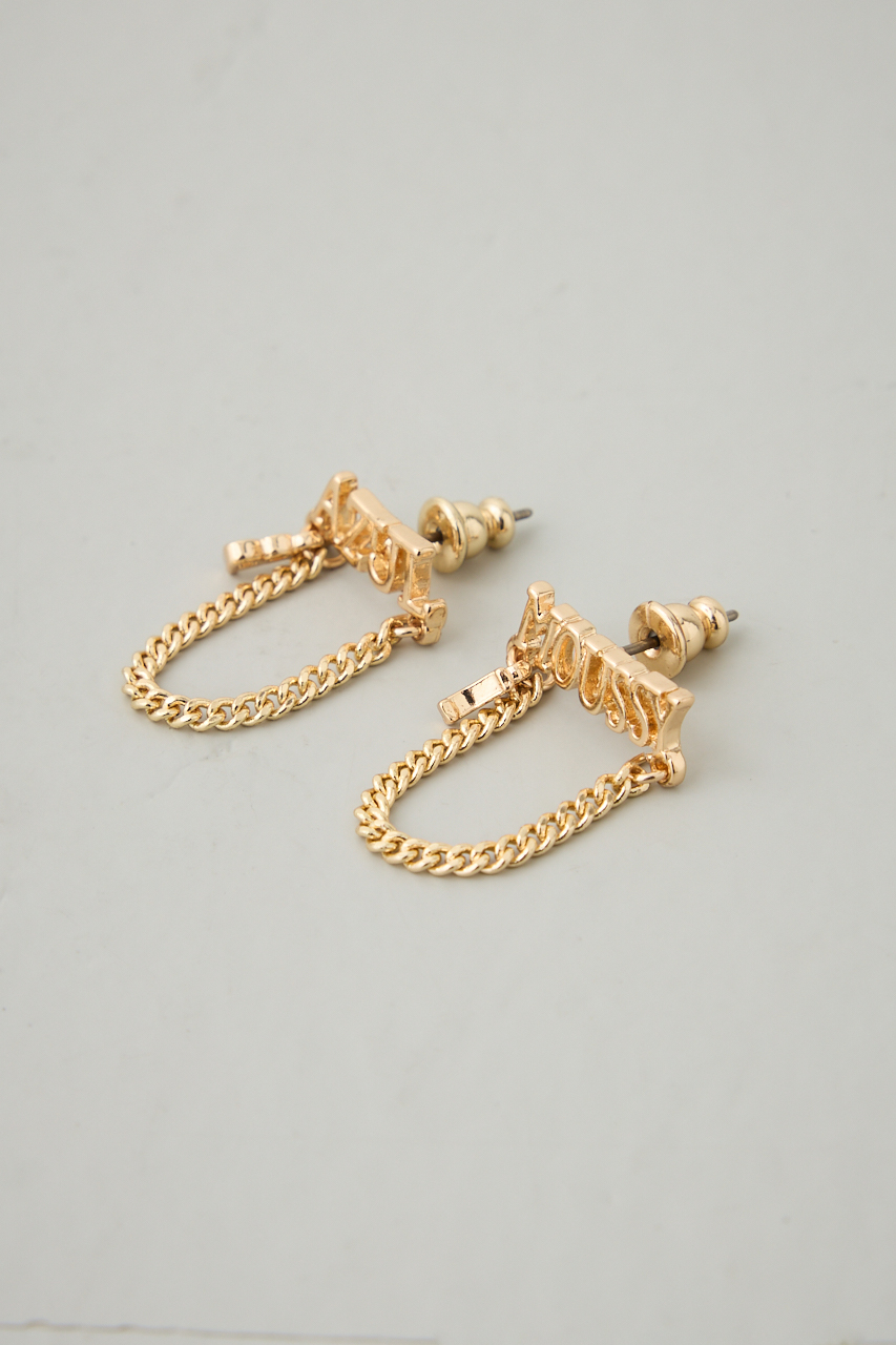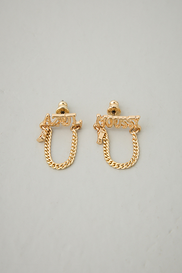 ブランドロゴ×チェーンの組み合わせが目を引く、存在感たっぷりのキャッチーなピアス。