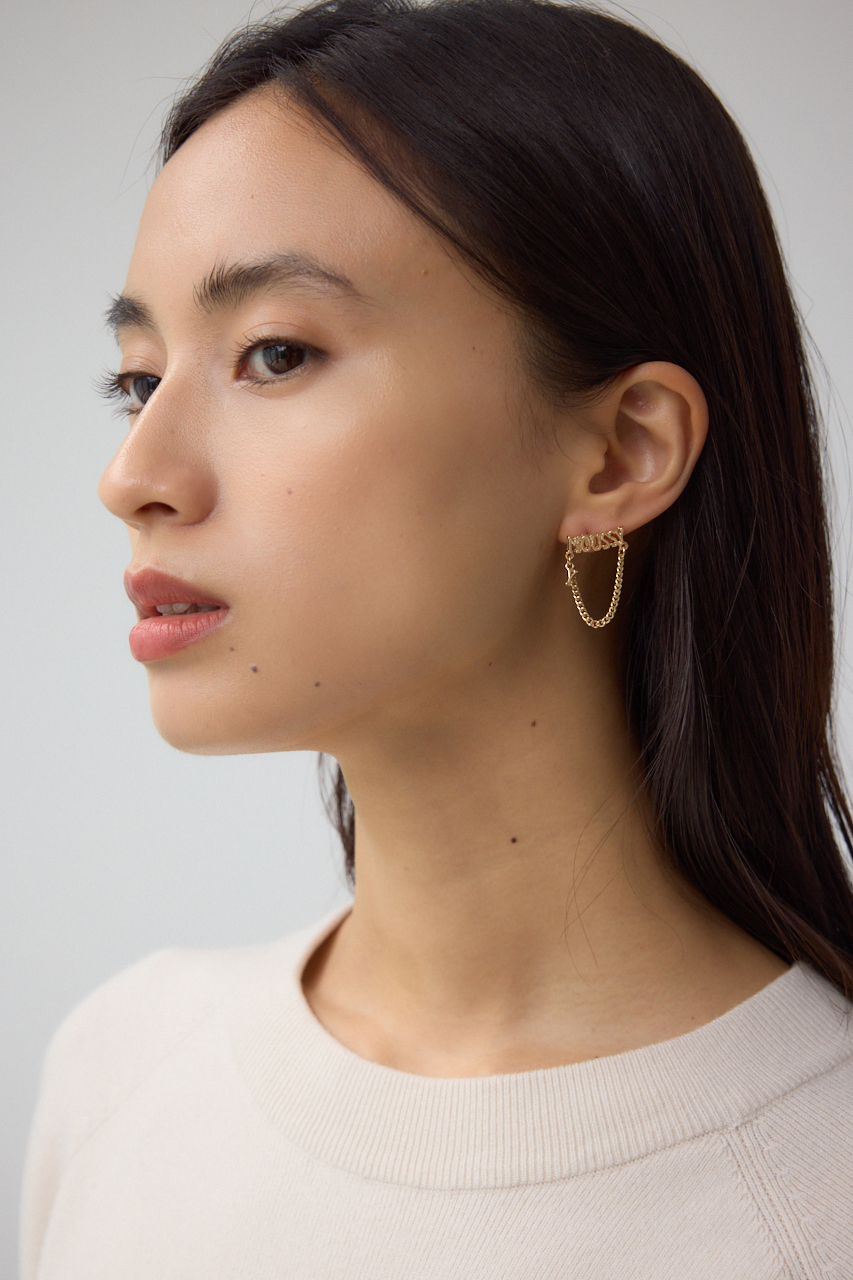 片耳ずつ違うチェーンの長さやレイアウトでアシンメトリーなバランスを楽しめるのもポイント。