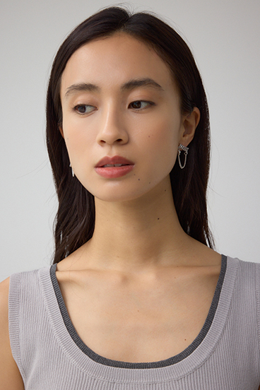 片耳ずつ違うチェーンの長さやレイアウトでアシンメトリーなバランスを楽しめるのもポイント。