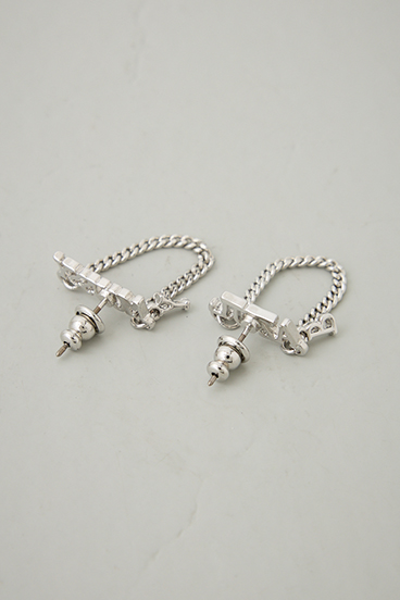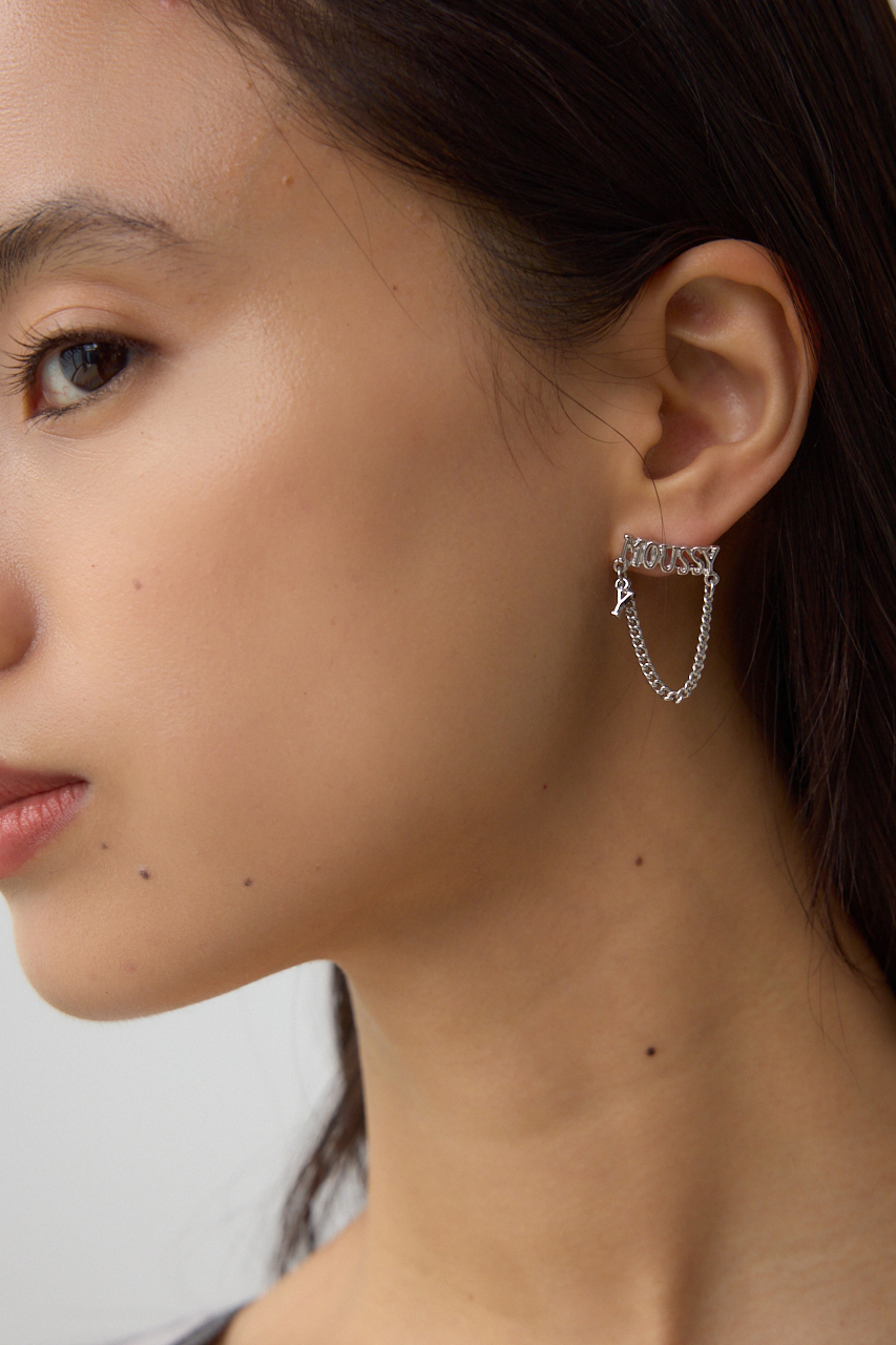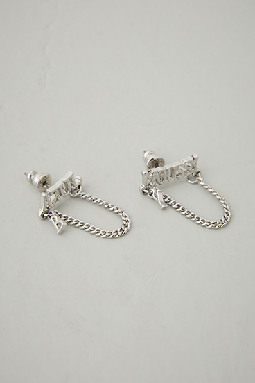 ブランドロゴ×チェーンの組み合わせが目を引く、存在感たっぷりのキャッチーなピアス。