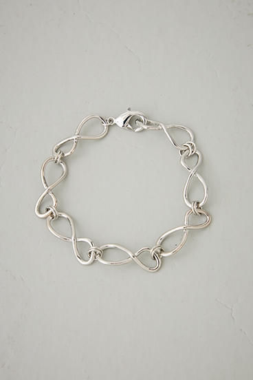インフィニティモチーフが連なった、ほどよくボリュームのあるチェーンブレスレット。