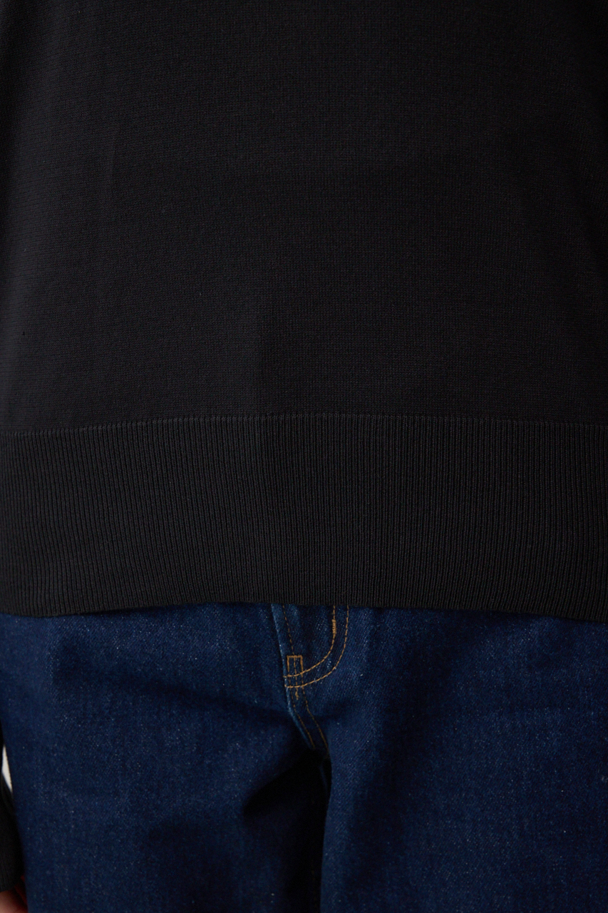 ドライなタッチの素材と、伸縮性のある素材をプレーティングして編み立てた素材です。