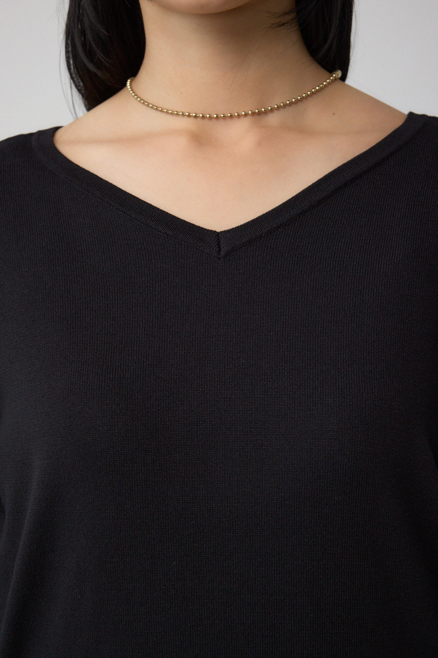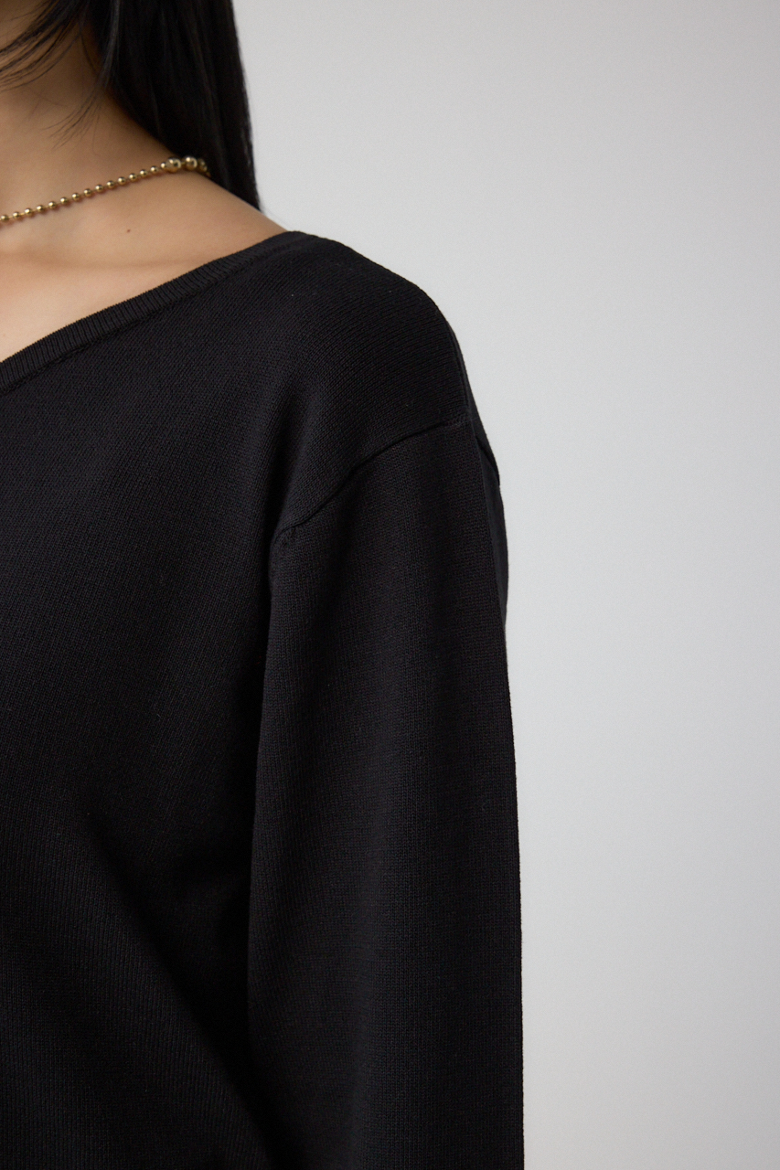 ボートネックとVネックを前後2WAYで着用できます。