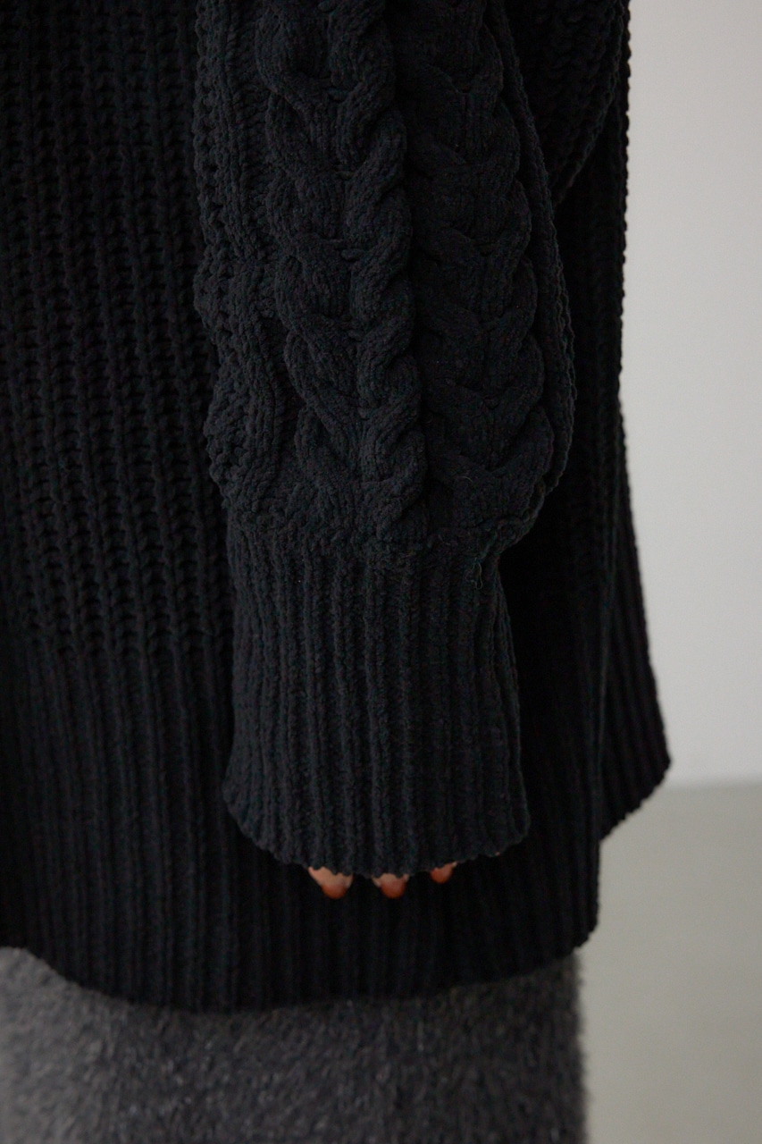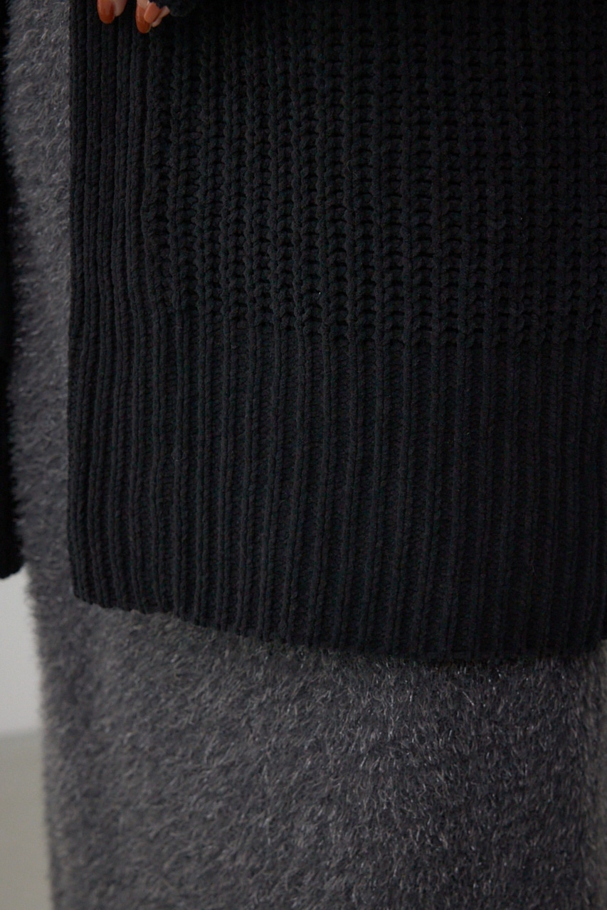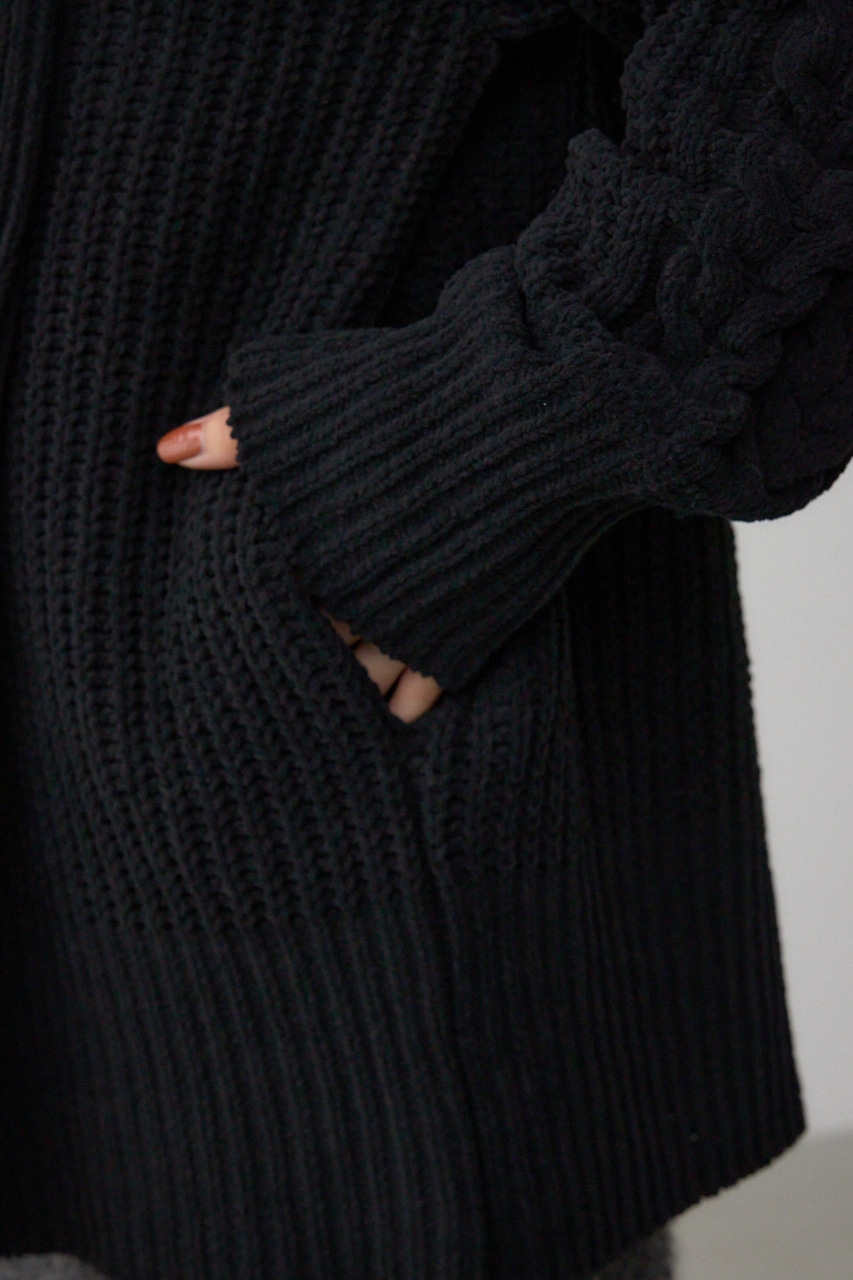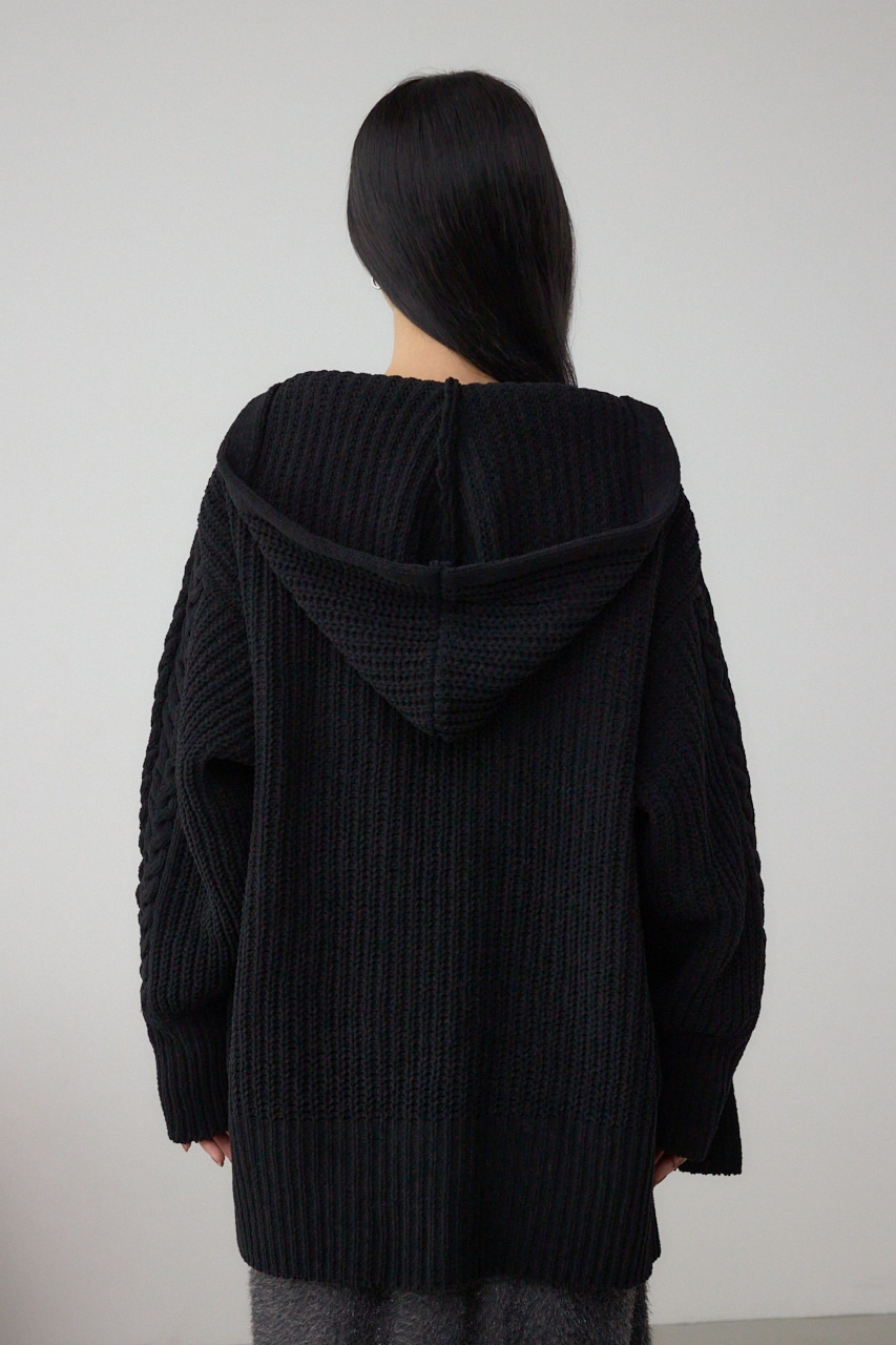 編み柄が引き立つように編み、風合い出しにこだわった一着です。