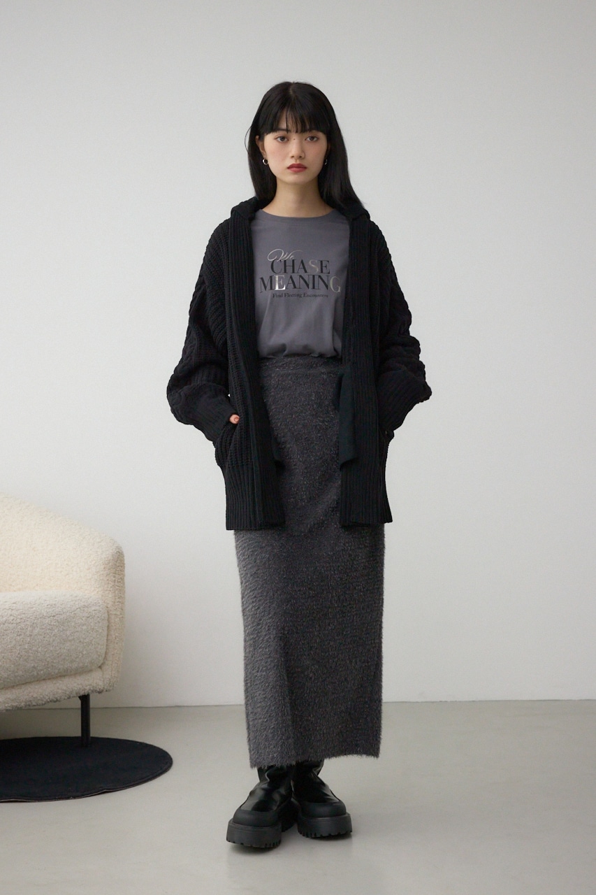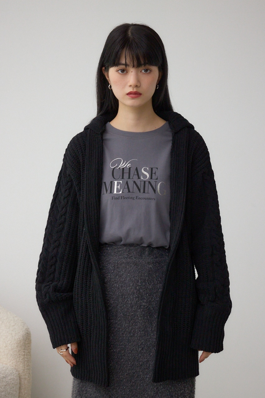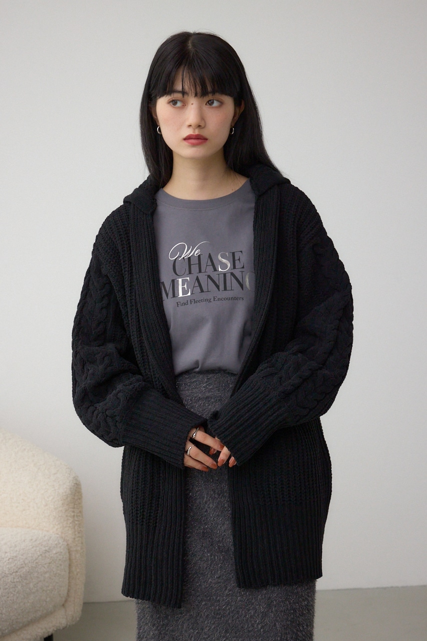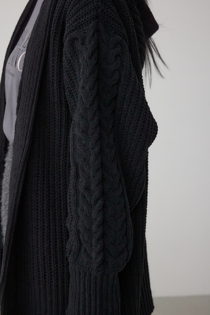 編み柄が引き立つように編み、風合い出しにこだわった一着です。