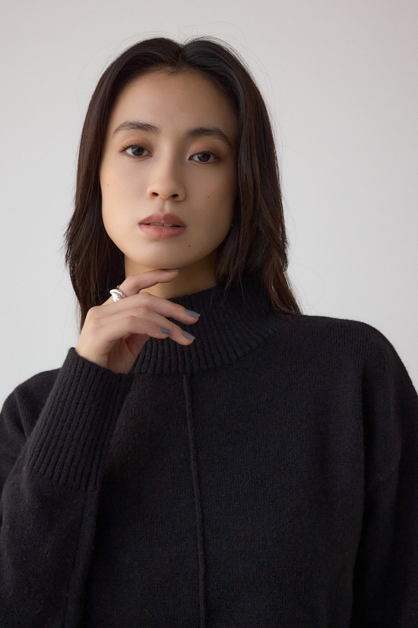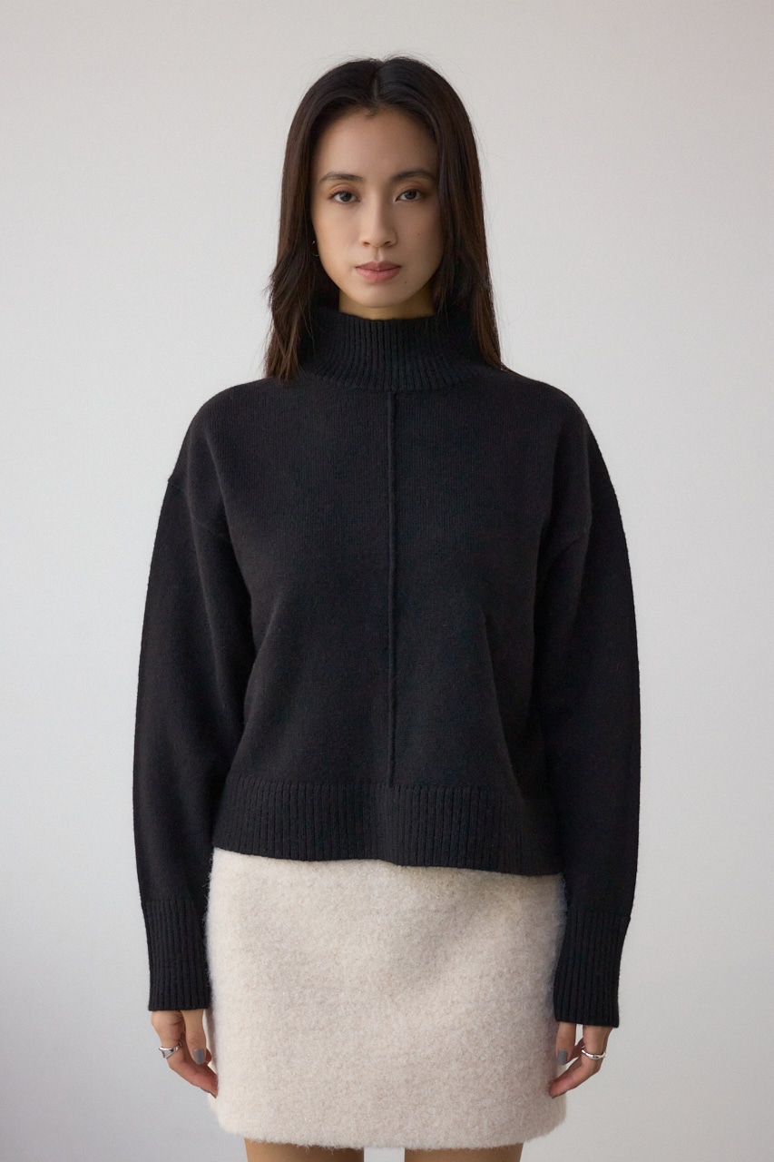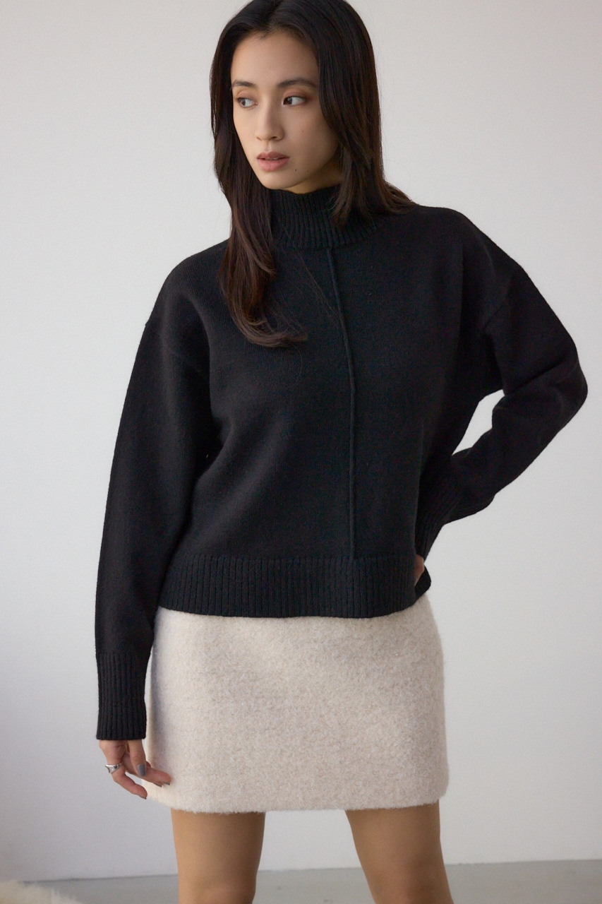 鮮やかなカラーが目を惹く、ミニマルデザインのハイネックニットプルオーバー。
