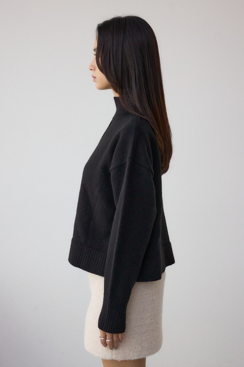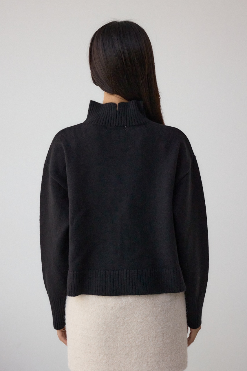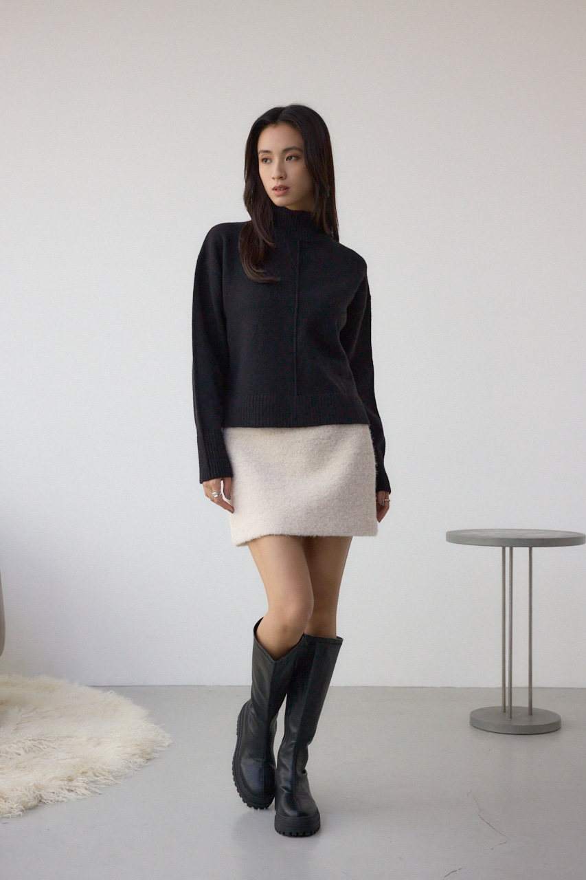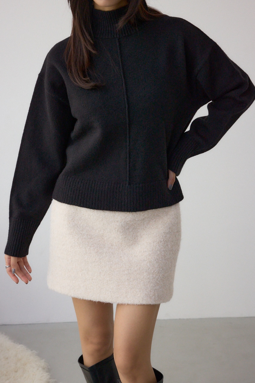 鮮やかなカラーが目を惹く、ミニマルデザインのハイネックニットプルオーバー。