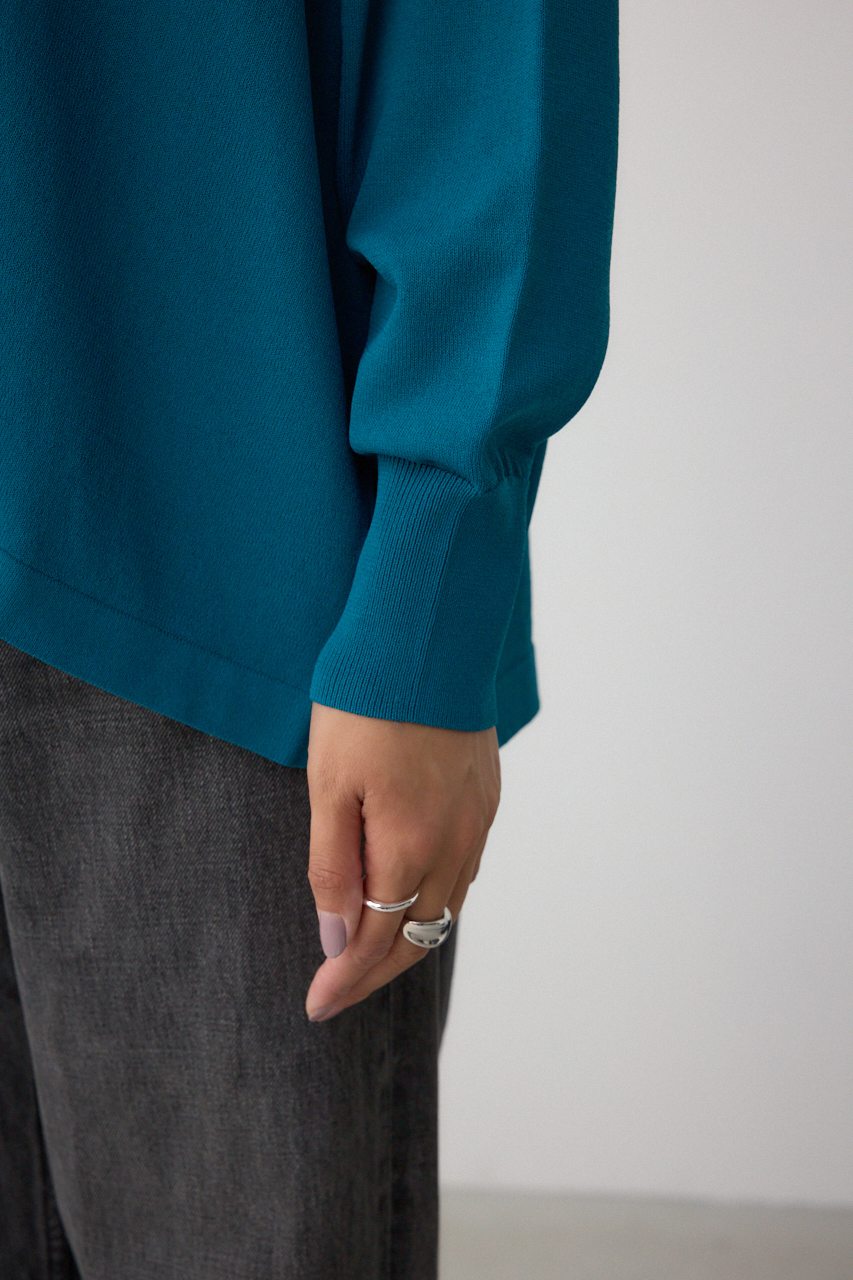レーヨン素材特有の落ち感と滑らかさが特徴のハイゲージニットです。