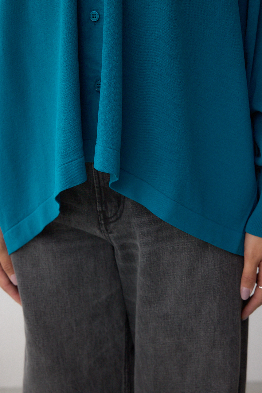 ワイドシルエットでありながら、すっきとしたVネックなので首元は華奢に見える女性らしい一枚です。