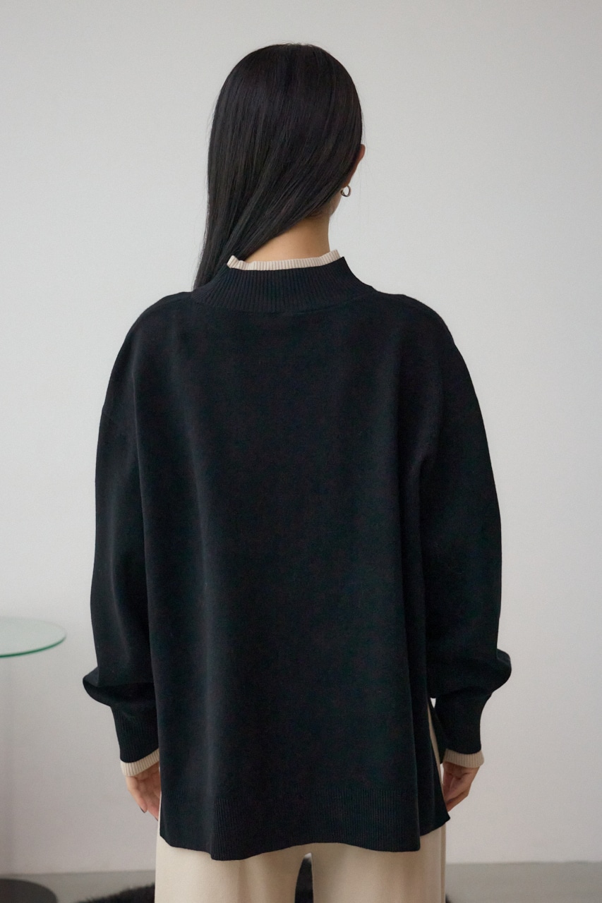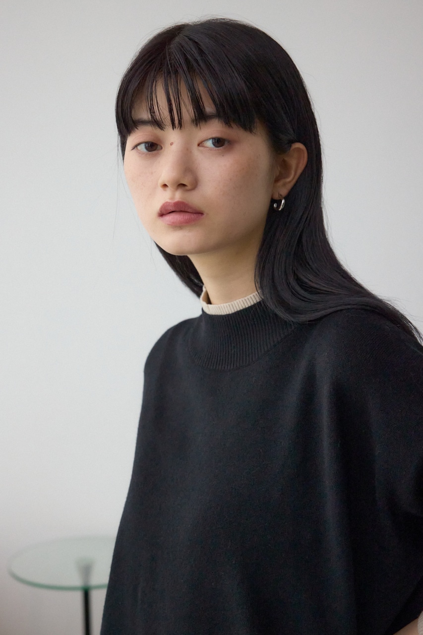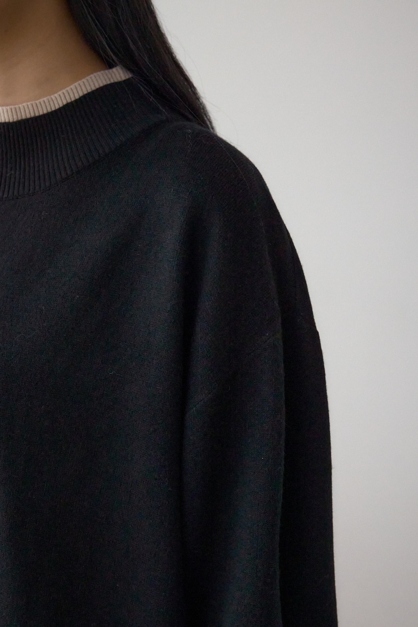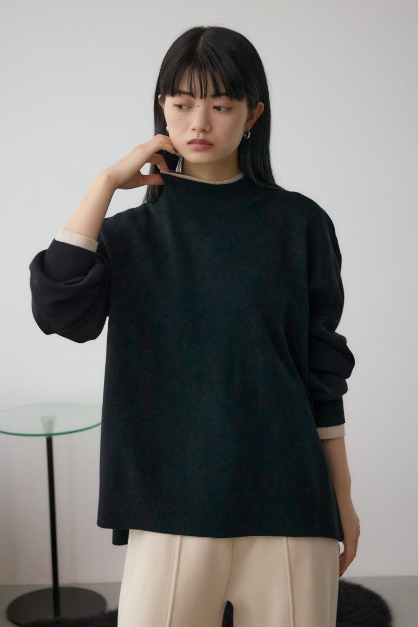襟元と袖口に配色のリブを施した、レイヤード風デザインが魅力のニットトップス。