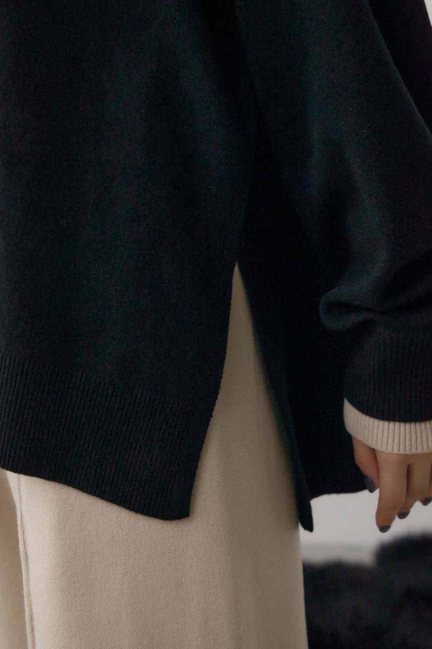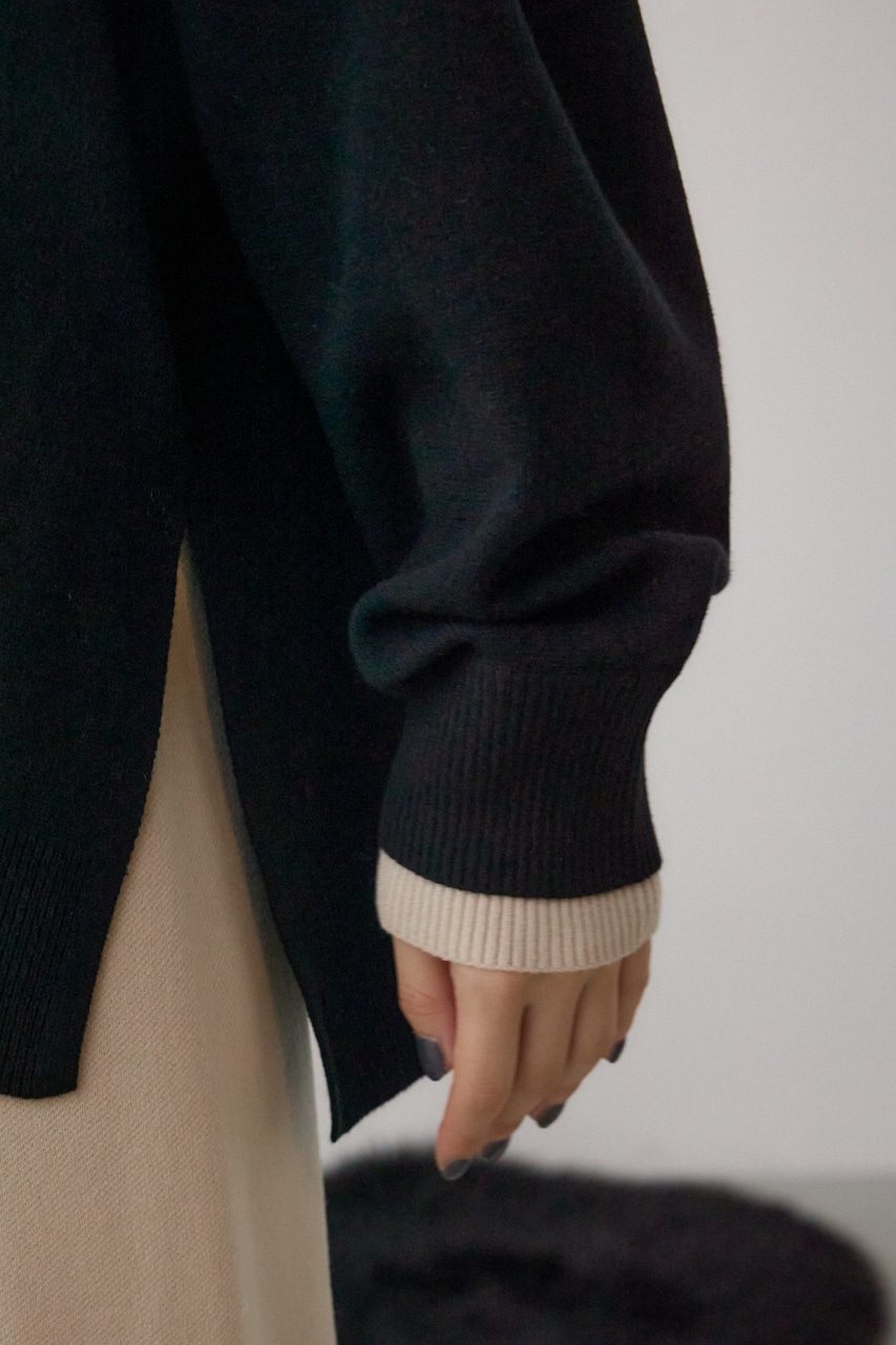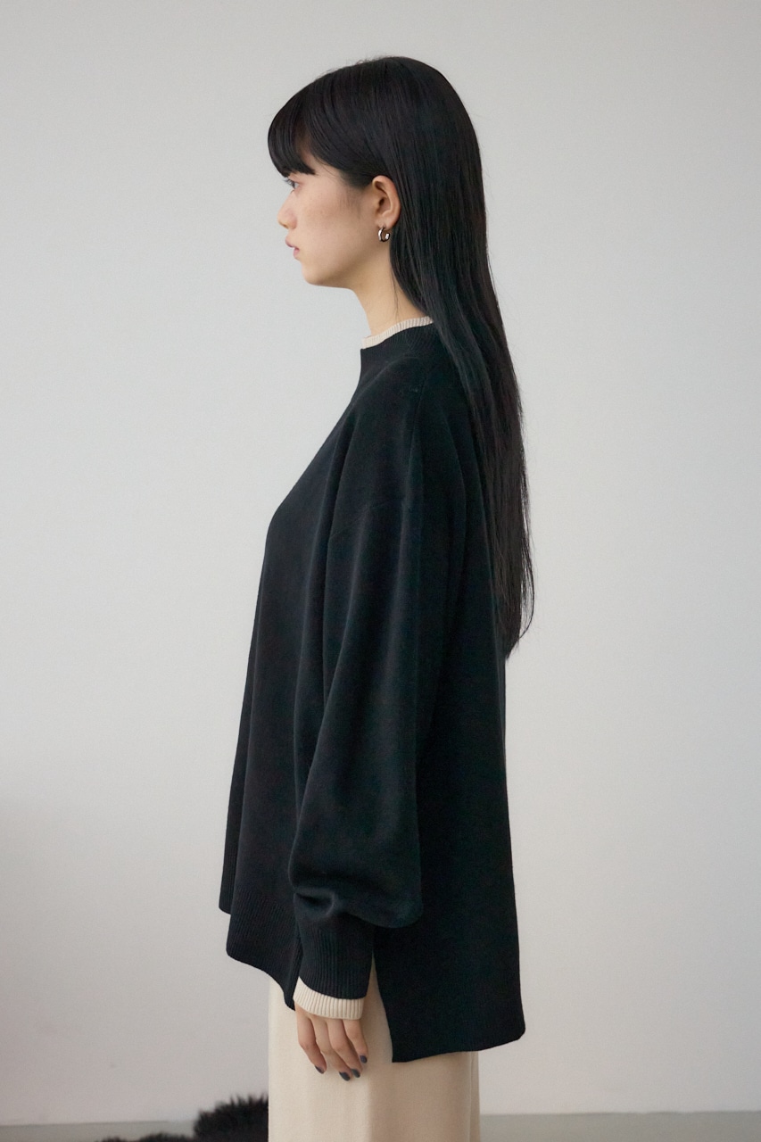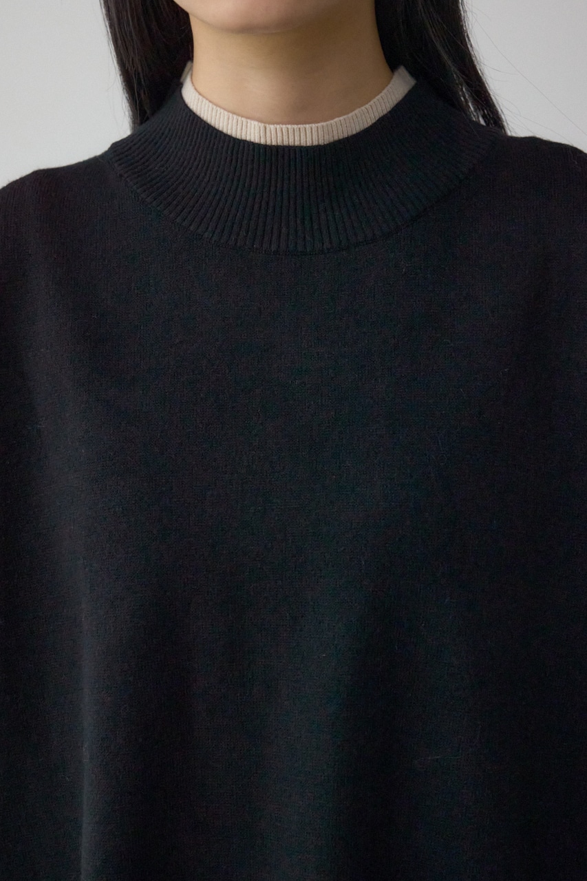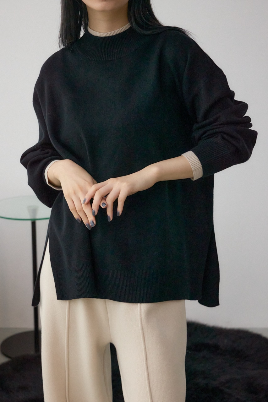 襟元と袖口に配色のリブを施した、レイヤード風デザインが魅力のニットトップス。
