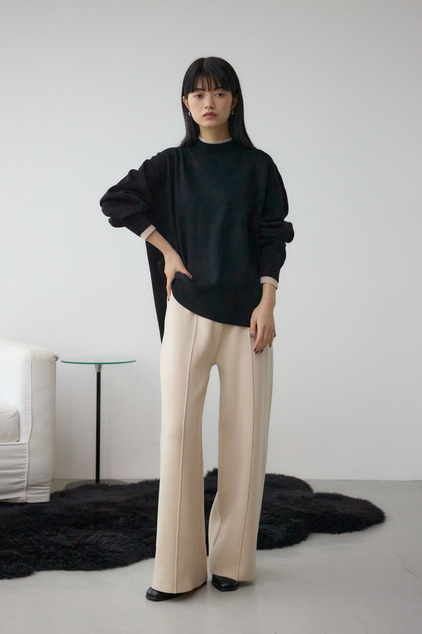 同素材のニットワイドパンツ(250IAB71-4531 格上げ ニットワイドパンツ)と合わせれば、統一感のあるセットアップスタイルが完成。