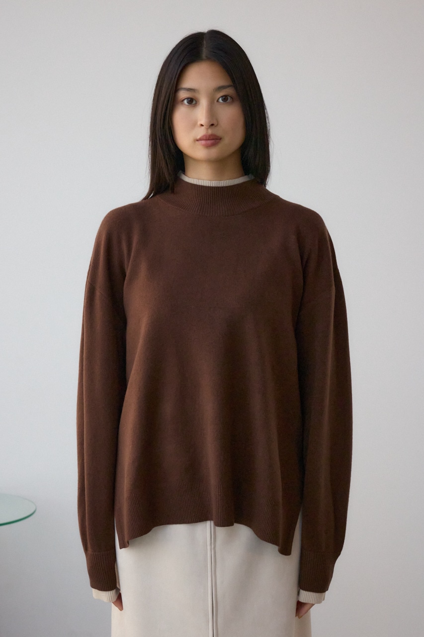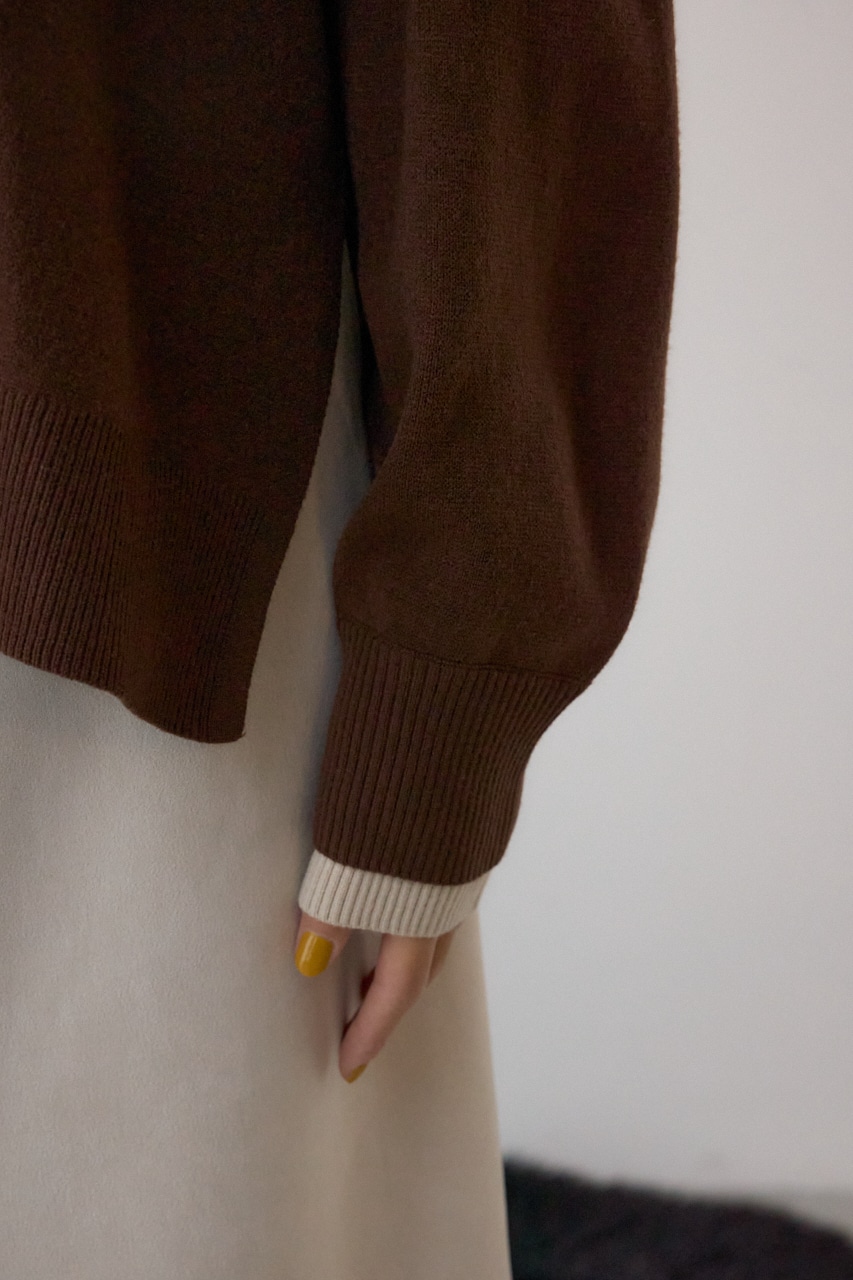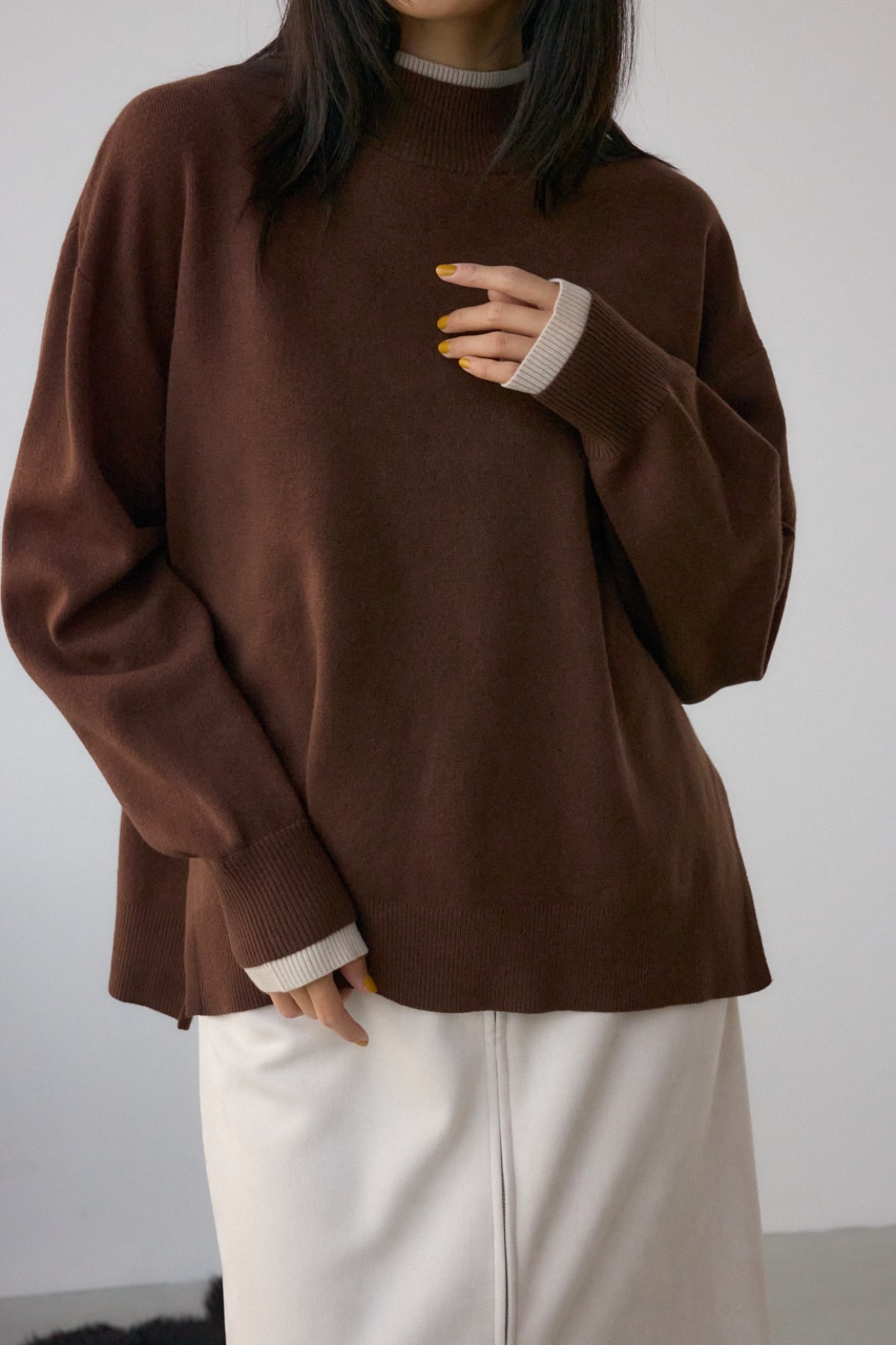 襟元と袖口に配色のリブを施した、レイヤード風デザインが魅力のニットトップス。