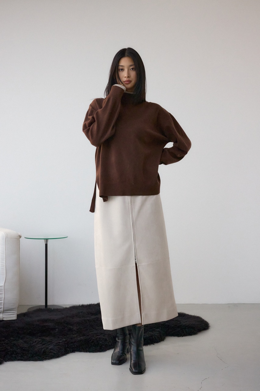 同素材のニットワイドパンツ(250IAB71-4531 格上げ ニットワイドパンツ)と合わせれば、統一感のあるセットアップスタイルが完成。
