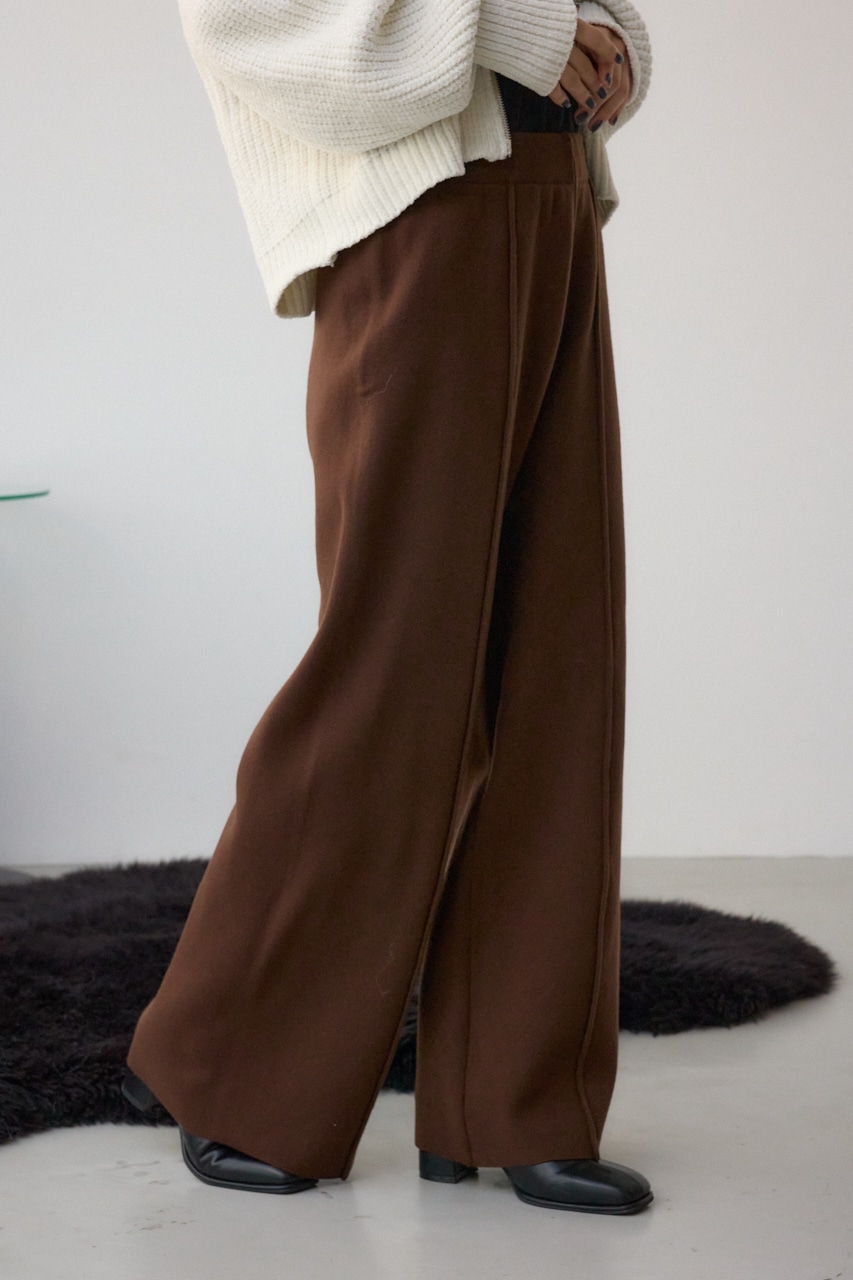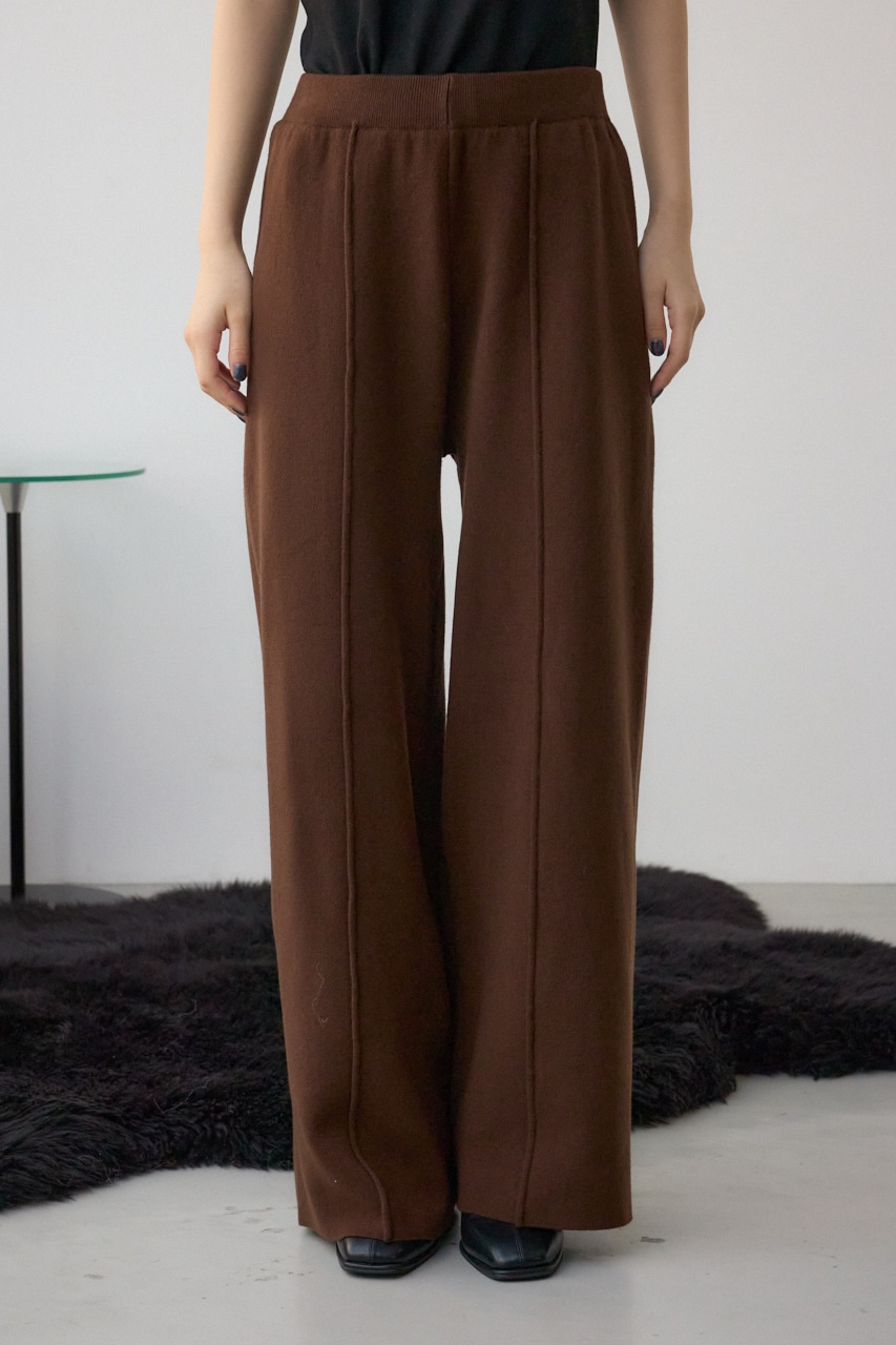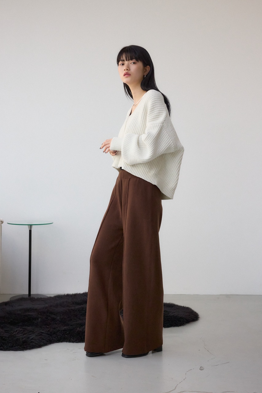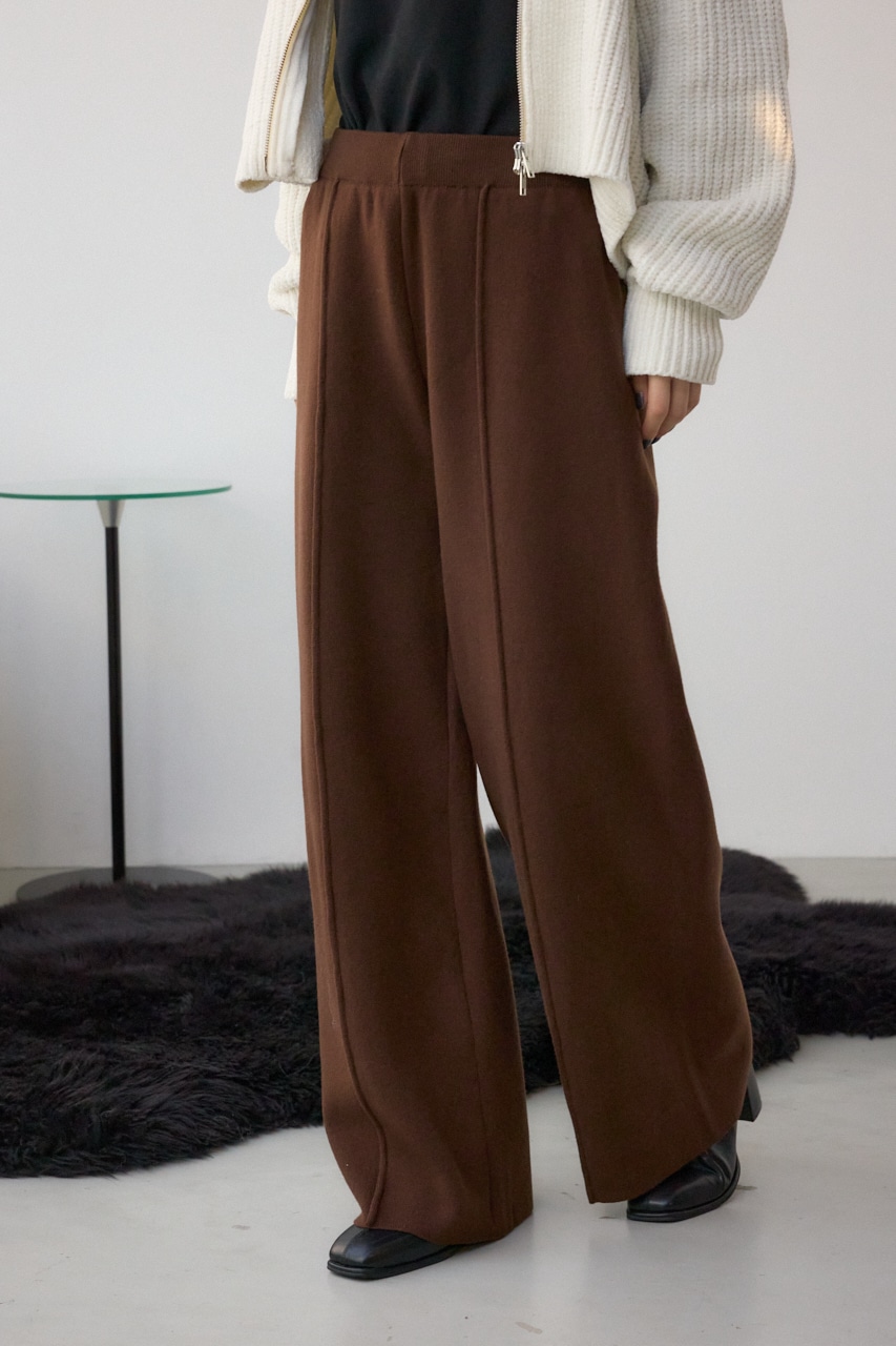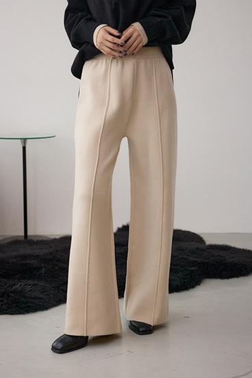 フロントに施されたピンタックが縦のラインを強調し、すっきりとした印象に仕上がるニットワイドパンツ。