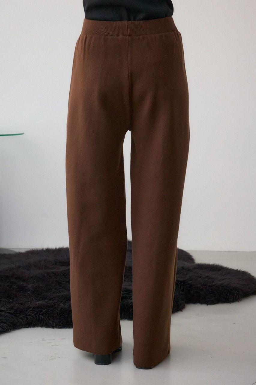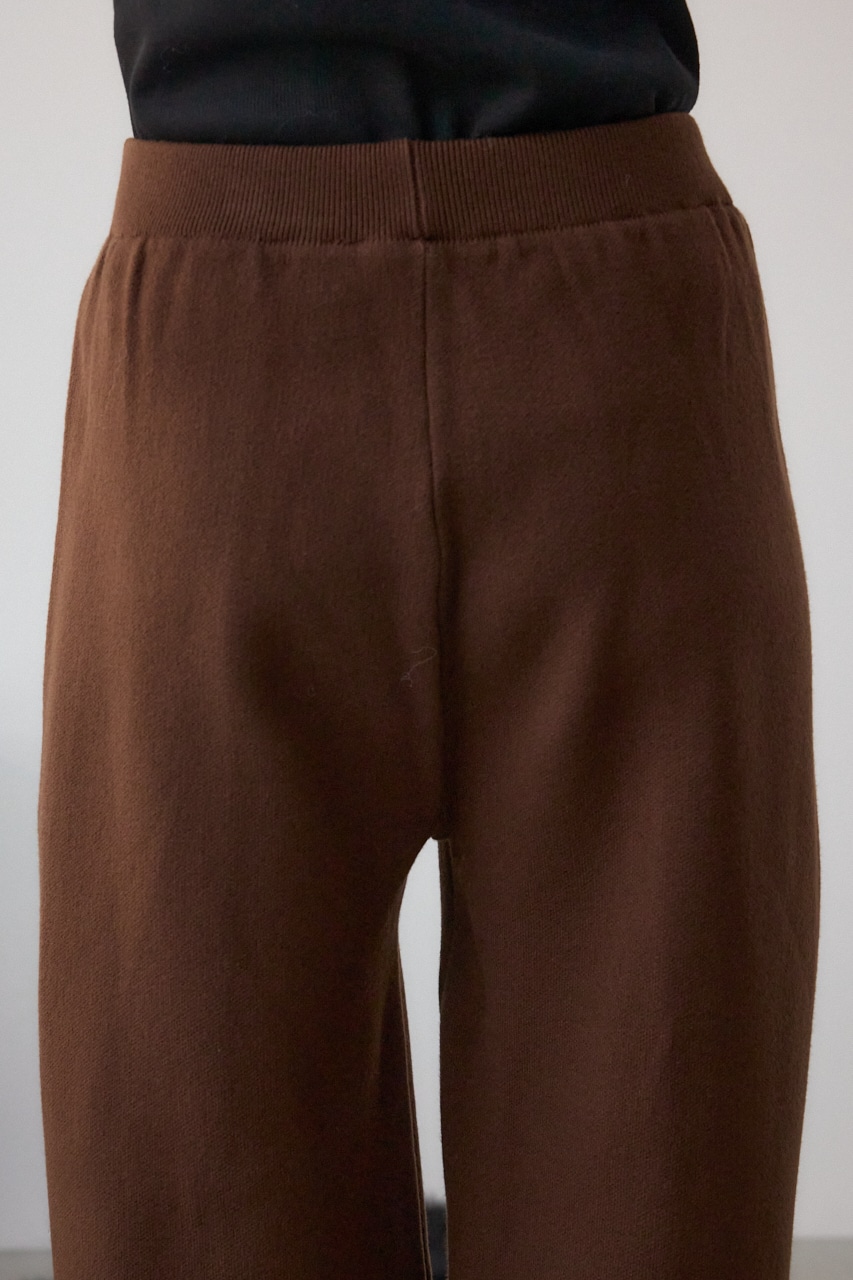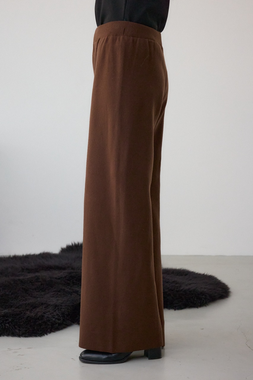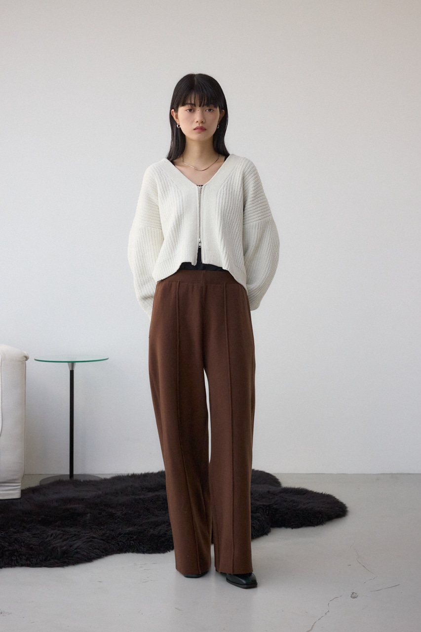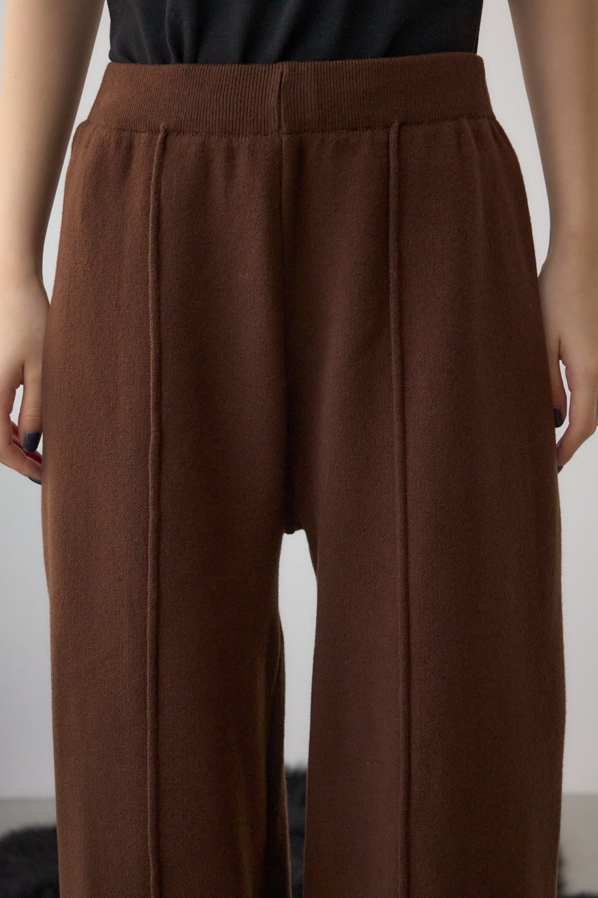 フロントに施されたピンタックが縦のラインを強調し、すっきりとした印象に仕上がるニットワイドパンツ。