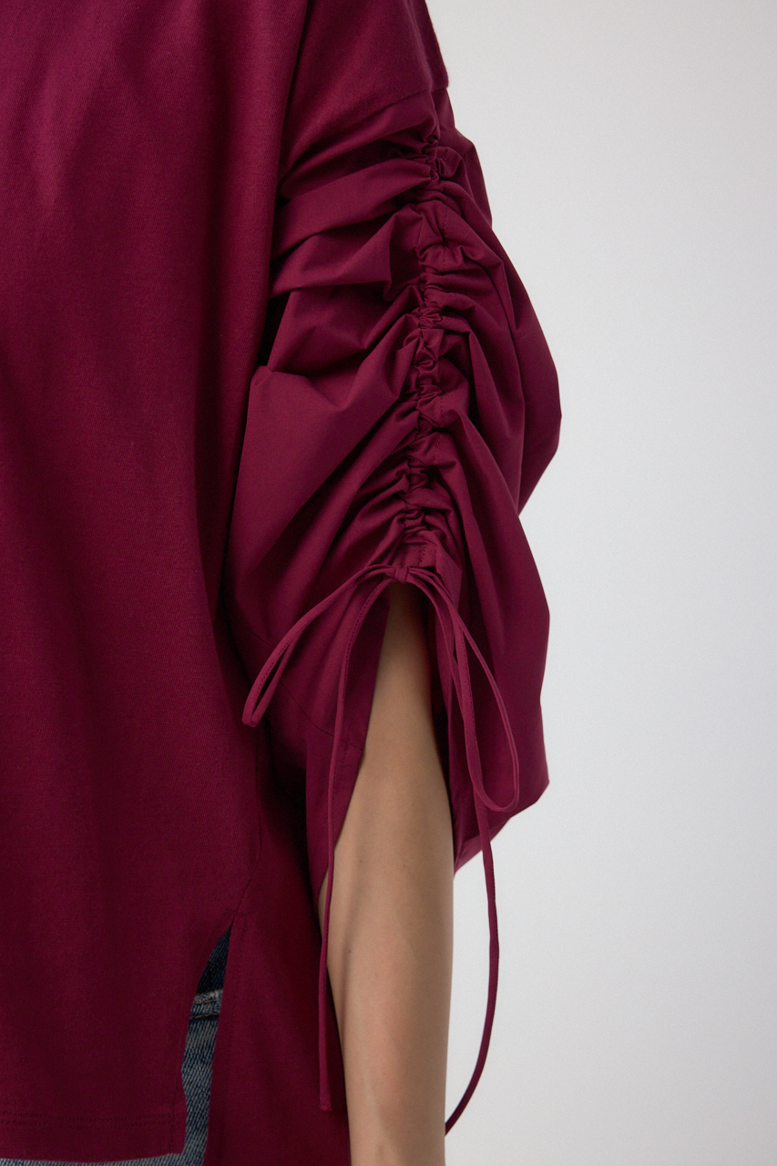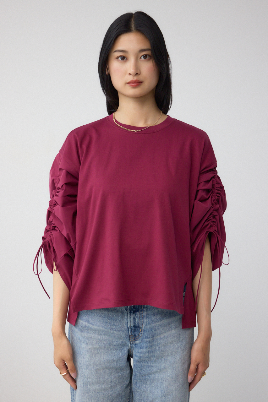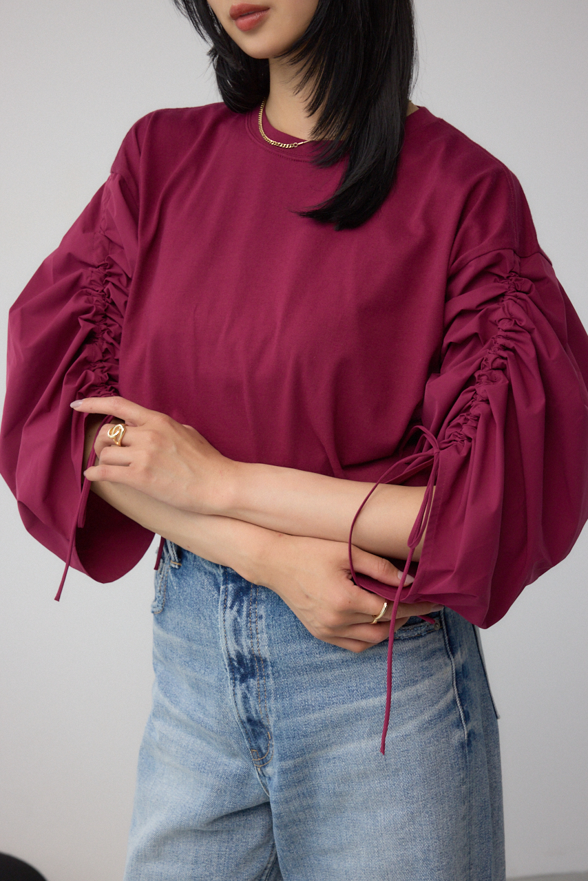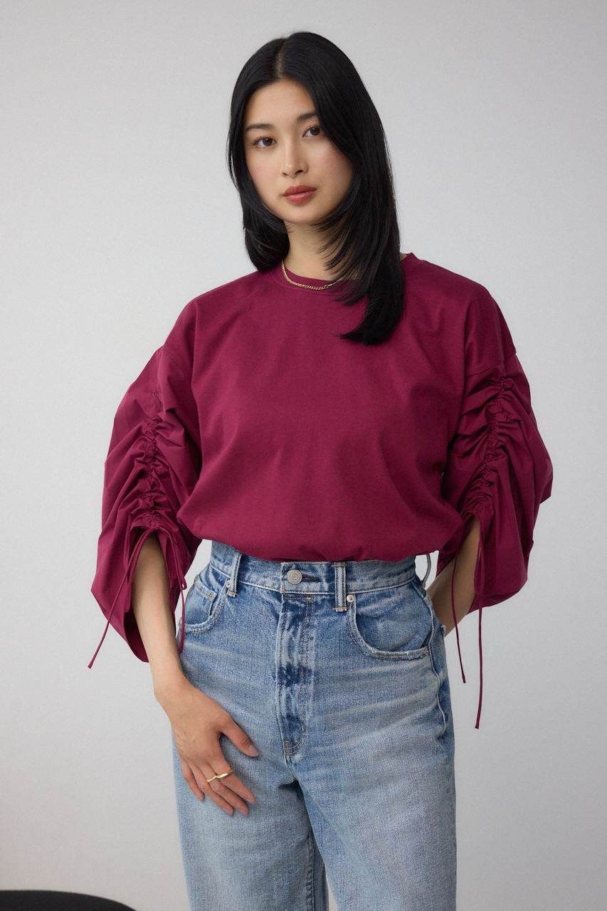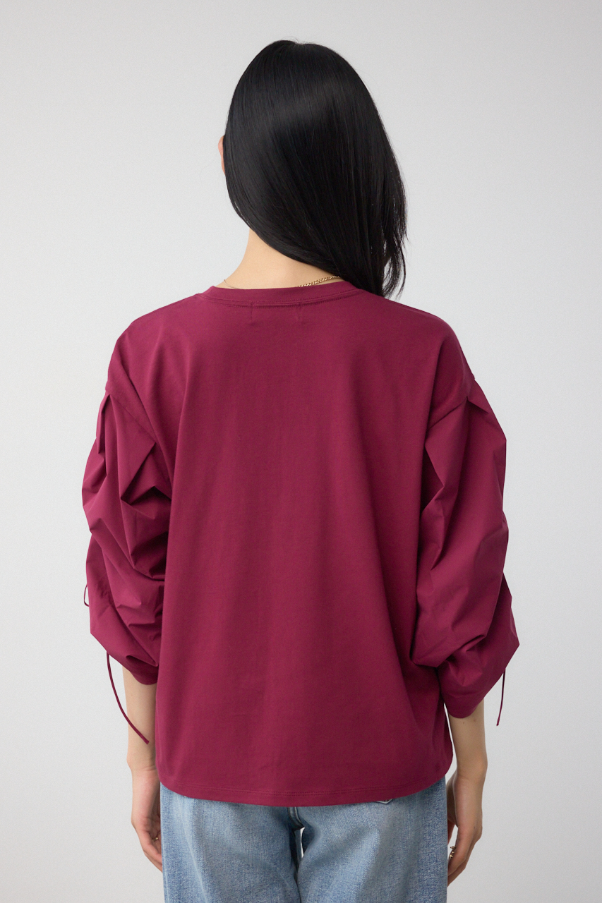 タックの入ったボリューム感のある布帛袖がデザインポイント。