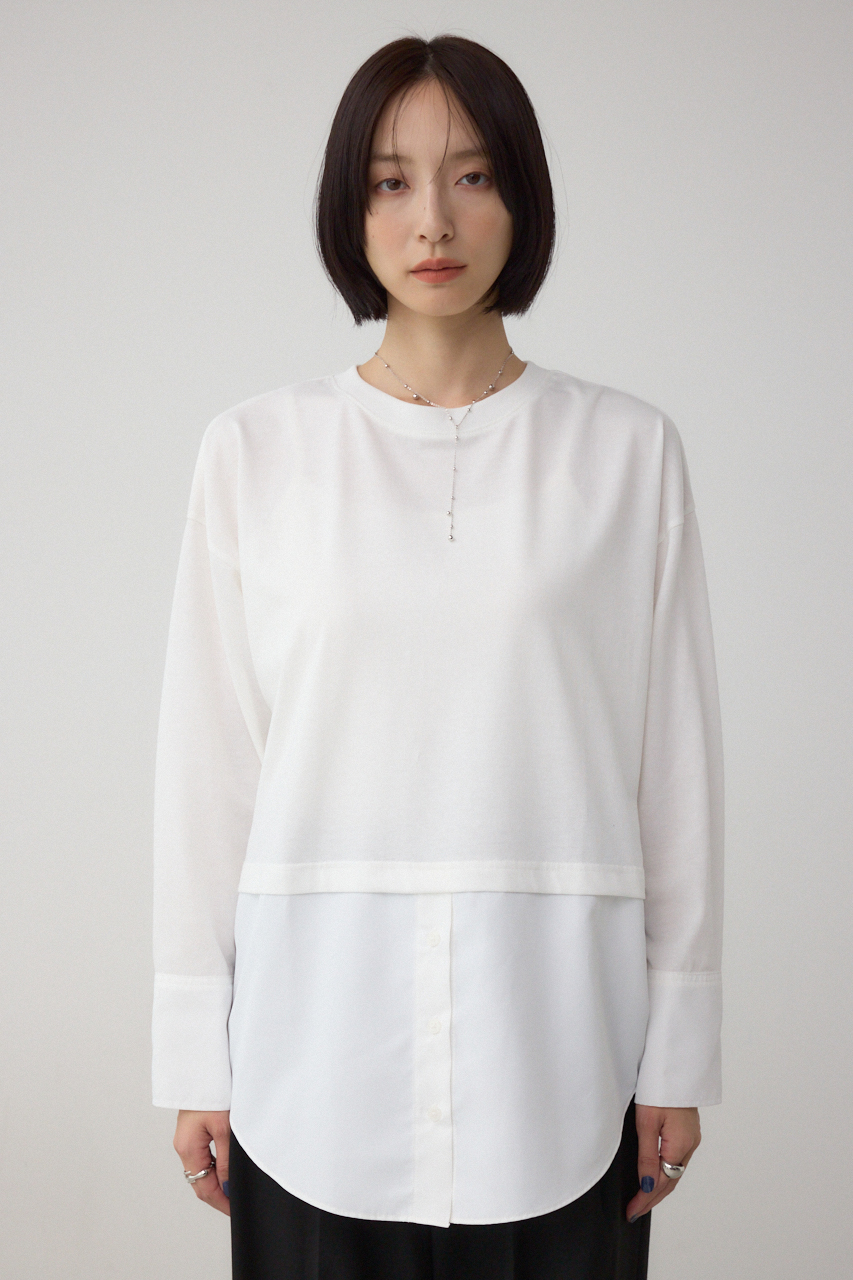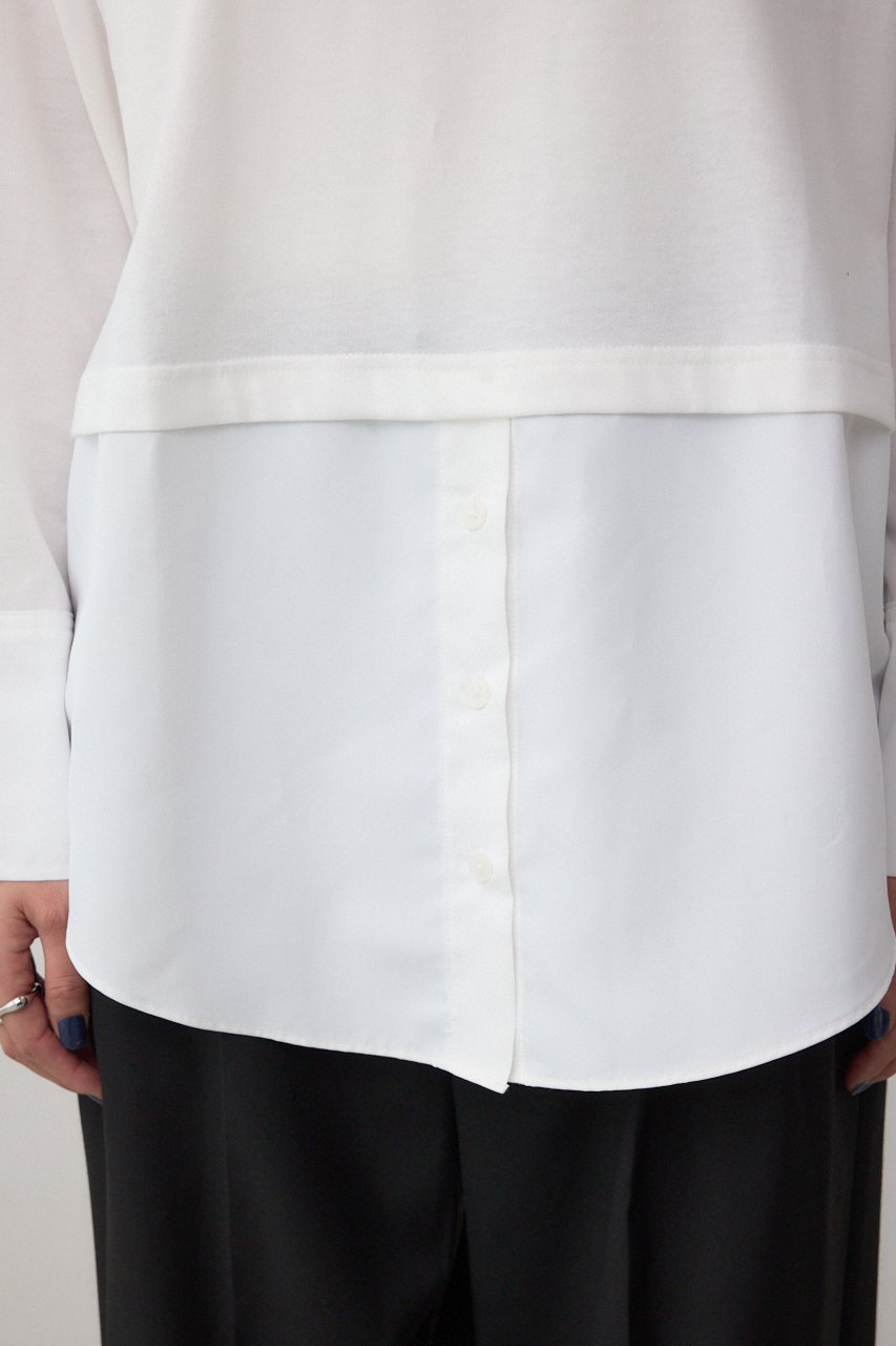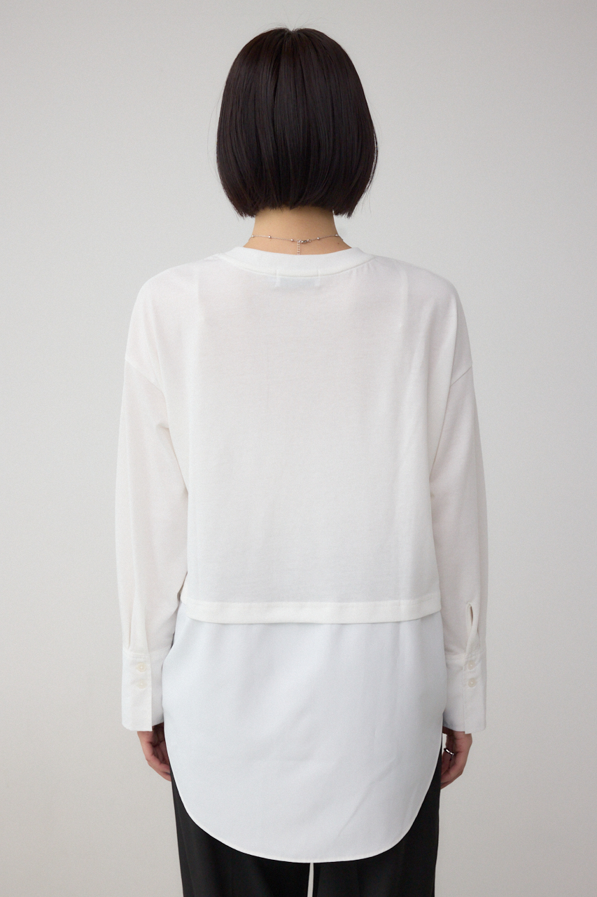 【M/WHT・柄WHT】まるでシャツを重ねたように見えるデザインカットソー。