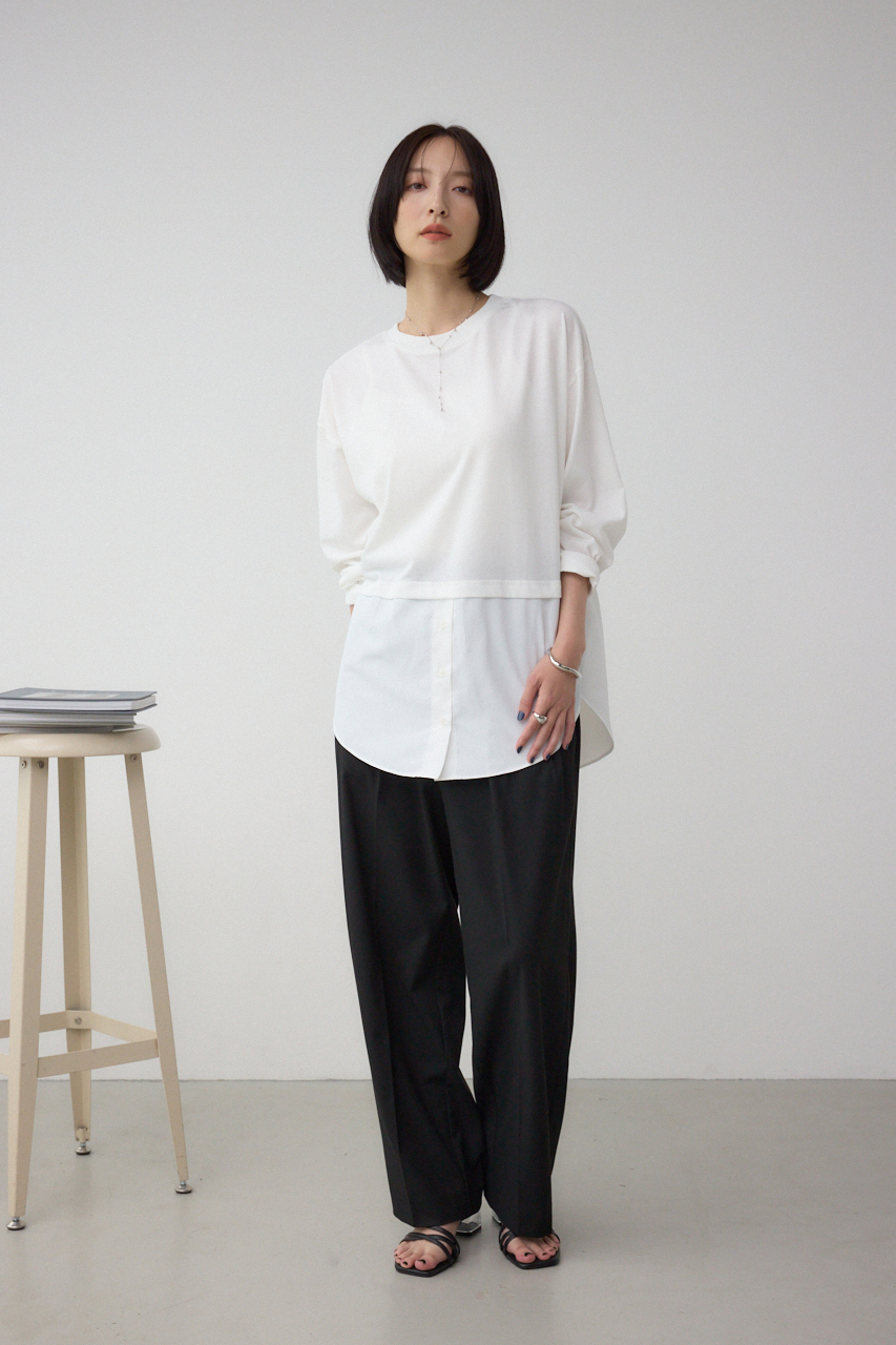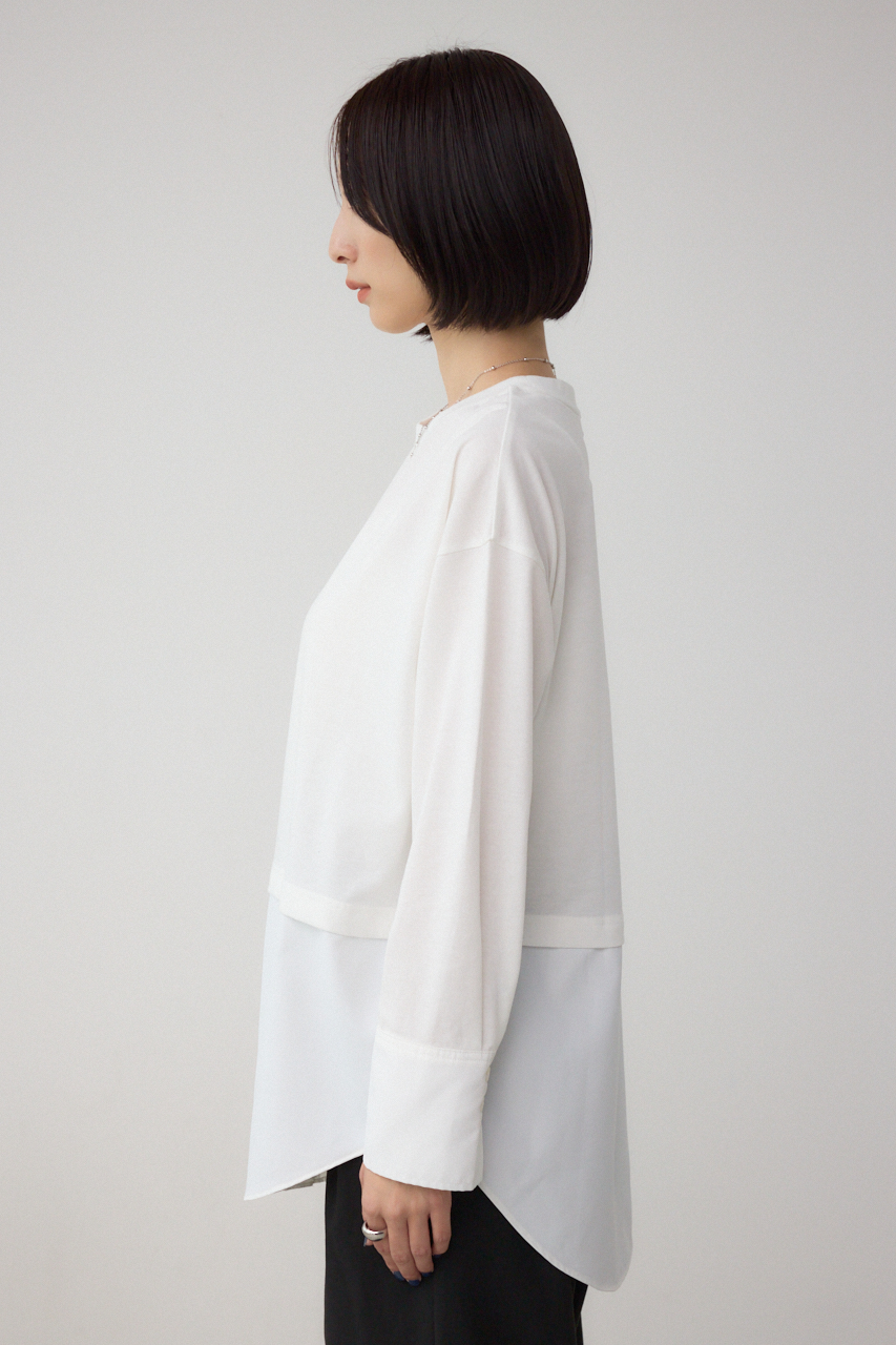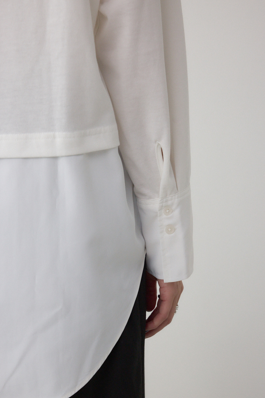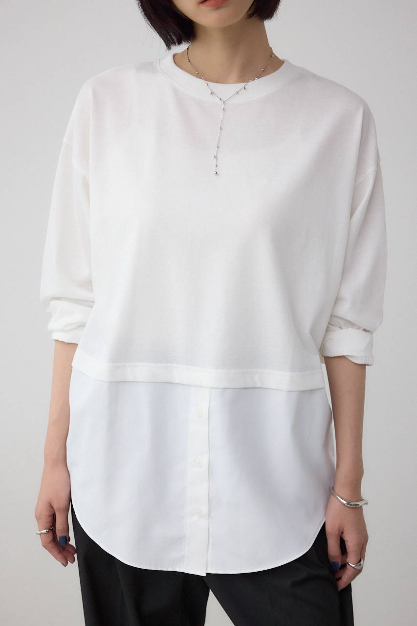 【M/WHT・柄WHT】まるでシャツを重ねたように見えるデザインカットソー。