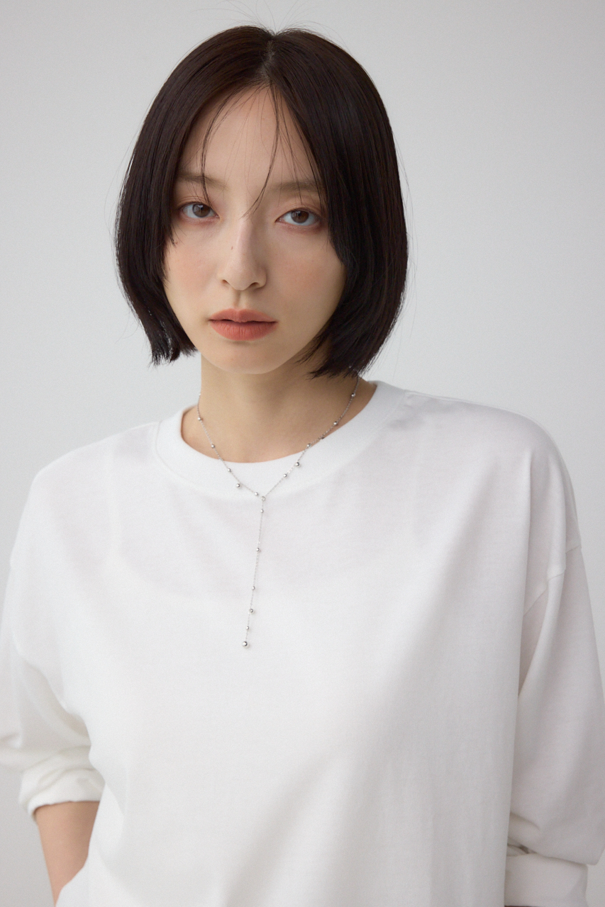 ニットとのレイヤードは勿論1枚でもサマになるヘムデザインとバックディテールデザインのトップスです。