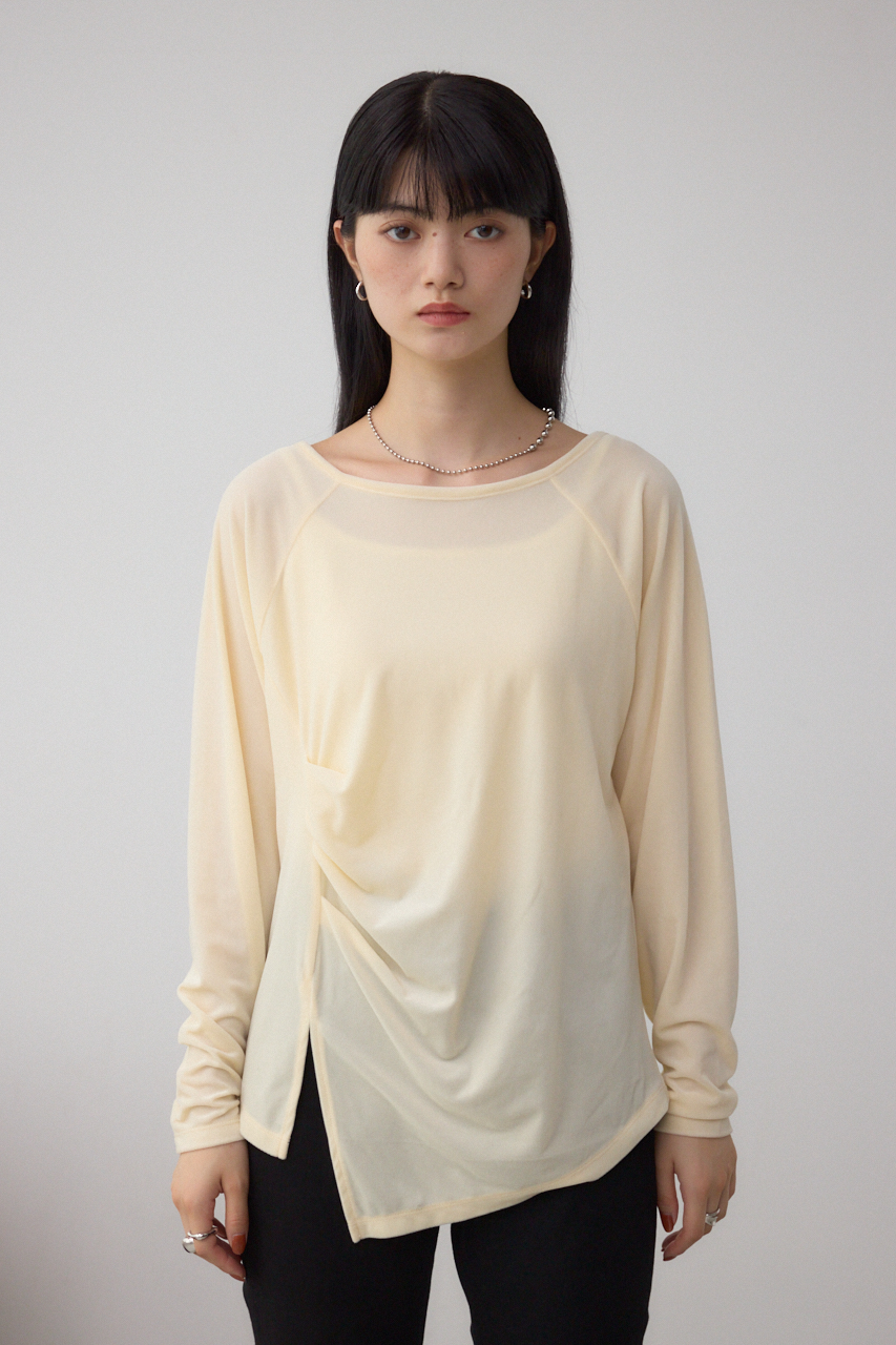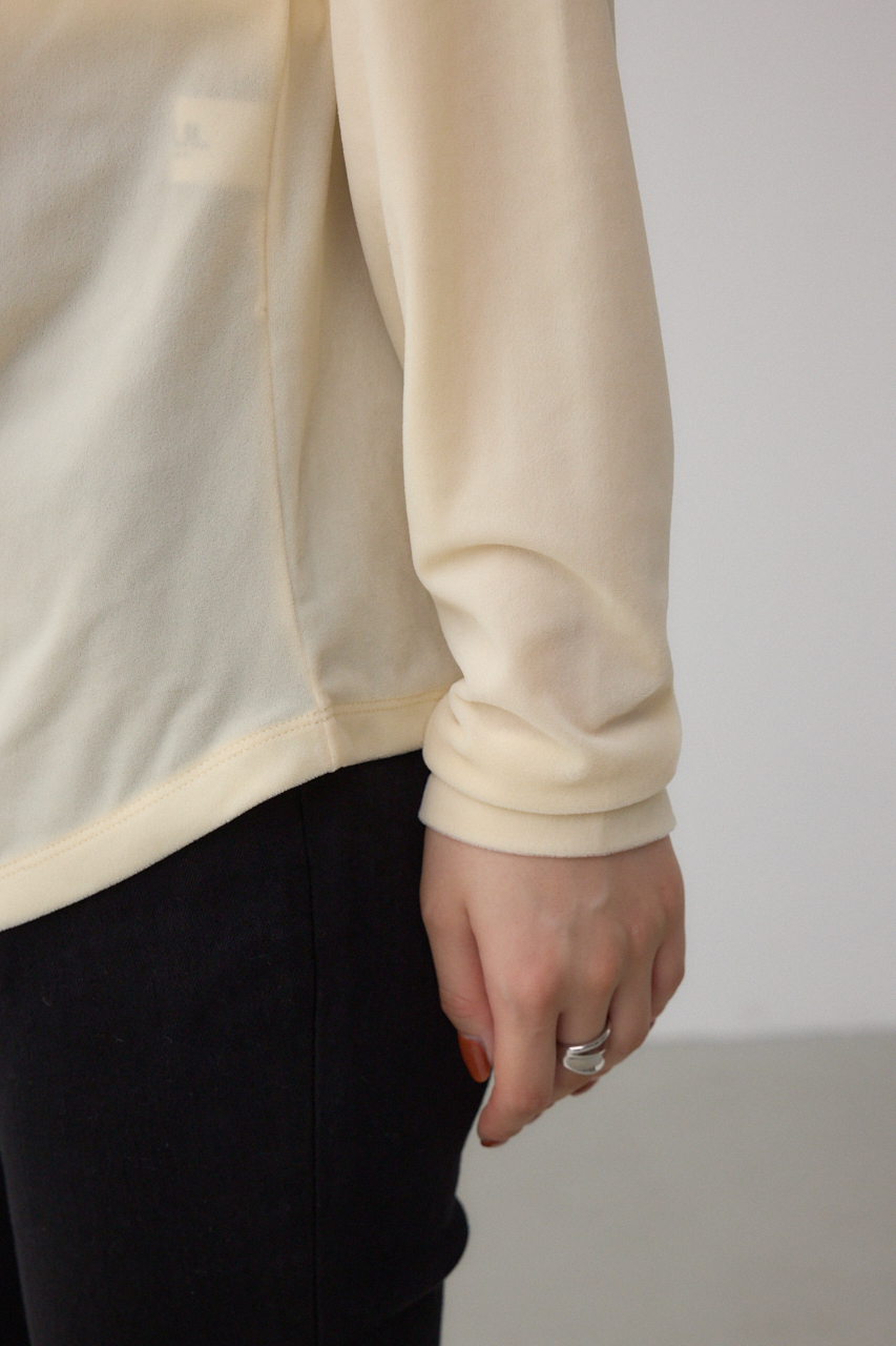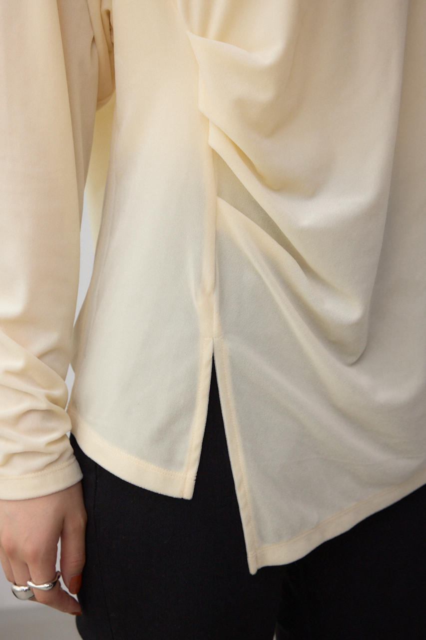 アシンメトリーのヘムのカットがポイントのベロアトップス。