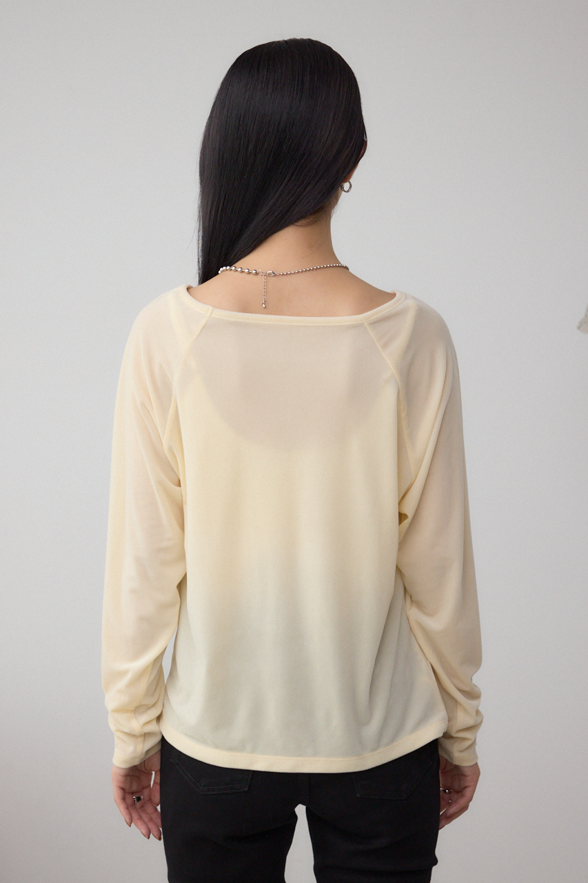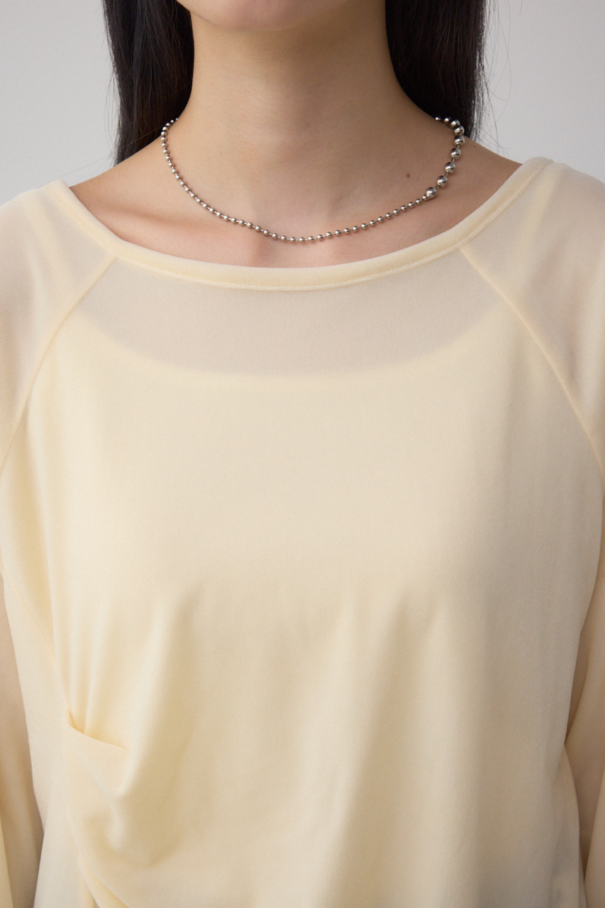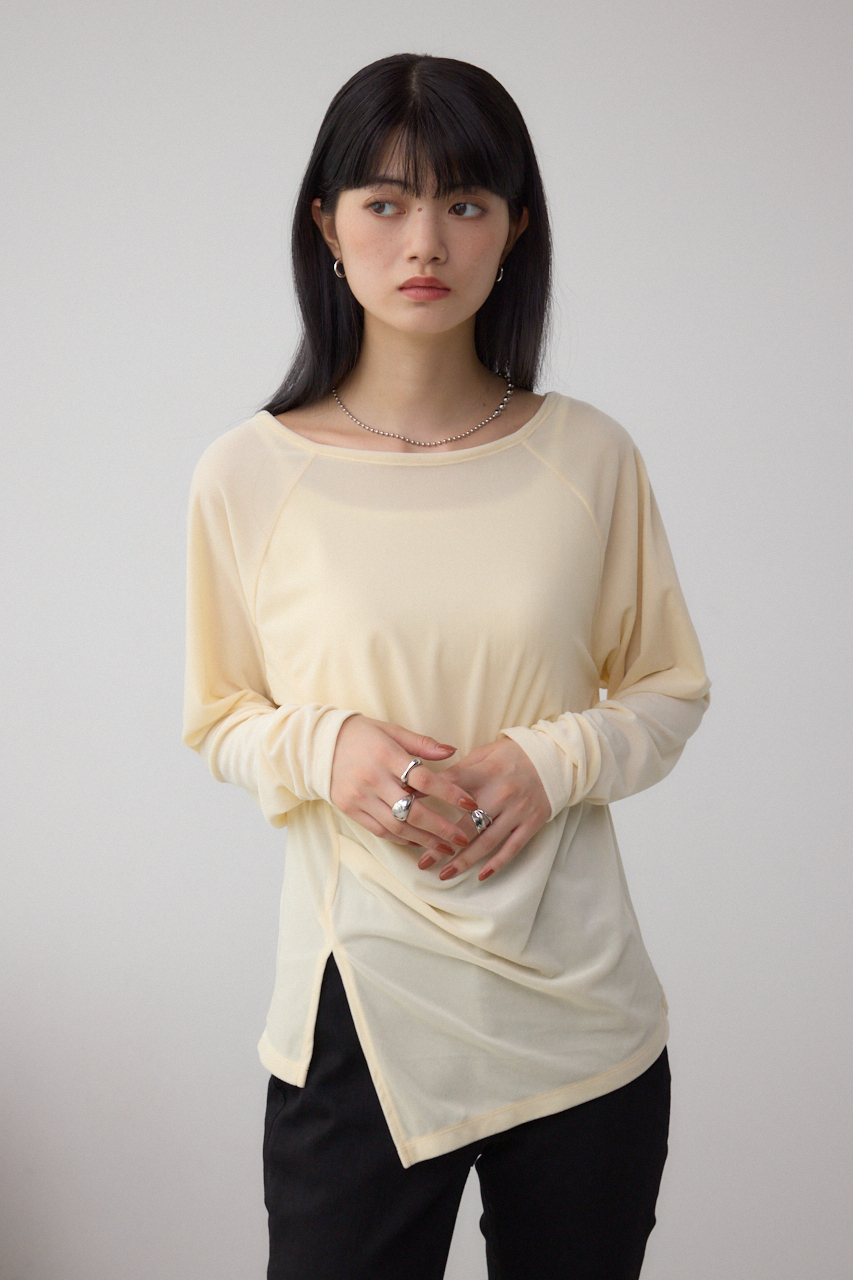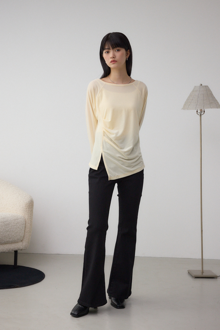 アシンメトリーのヘムのカットがポイントのベロアトップス。
