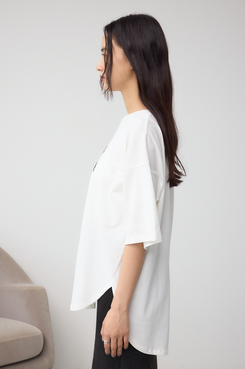ラウンドカットで裾に動きがあるので、前だけをタックインするスタイリングがおすすめです。