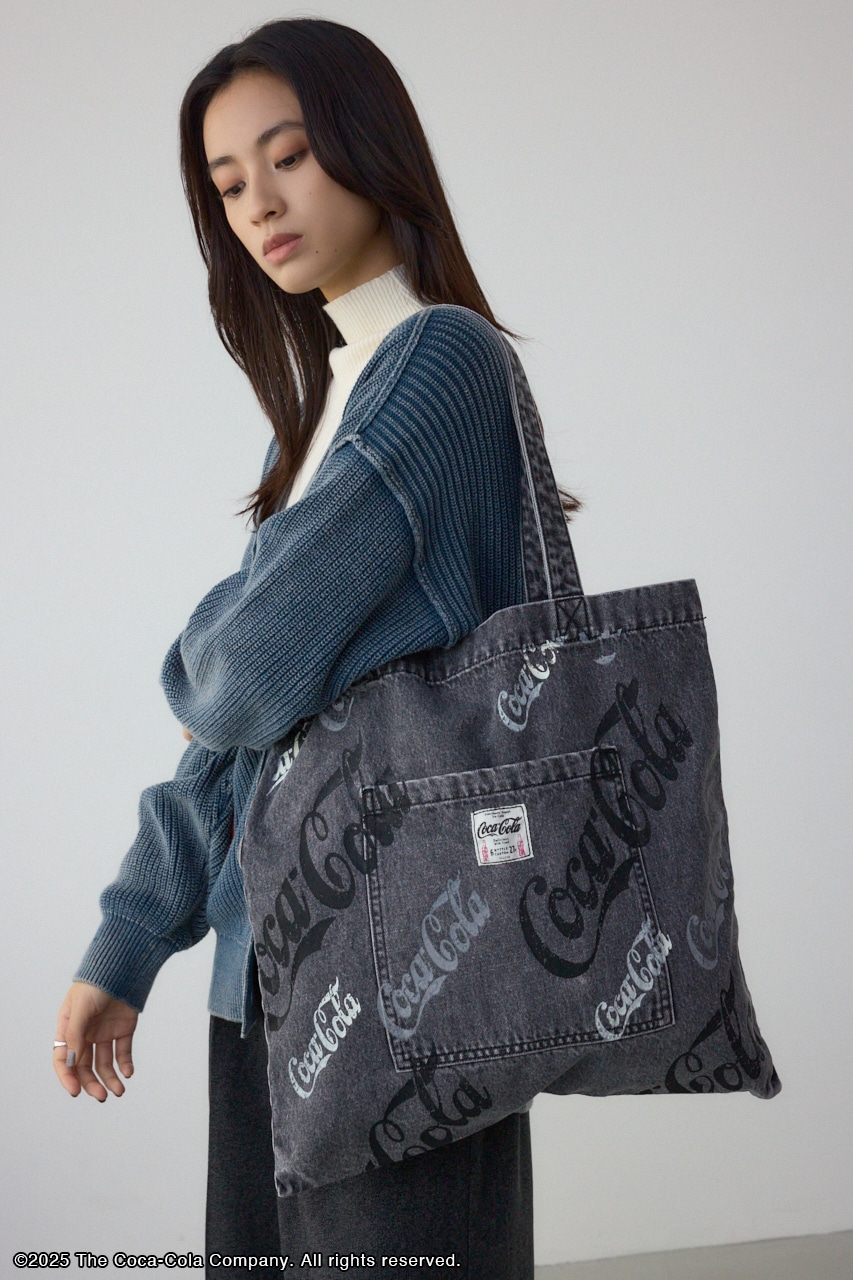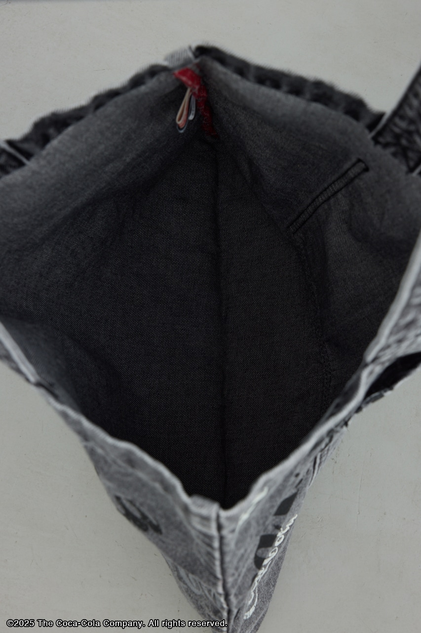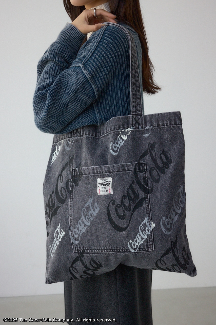 コカ・コーラのロゴを総柄プリントしたデニムトートバッグです。