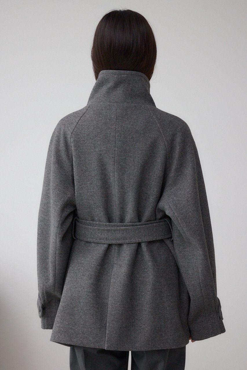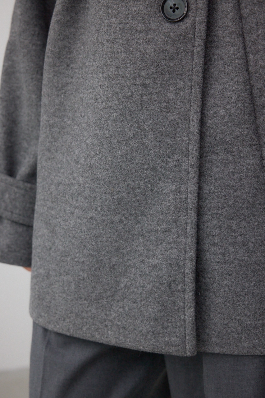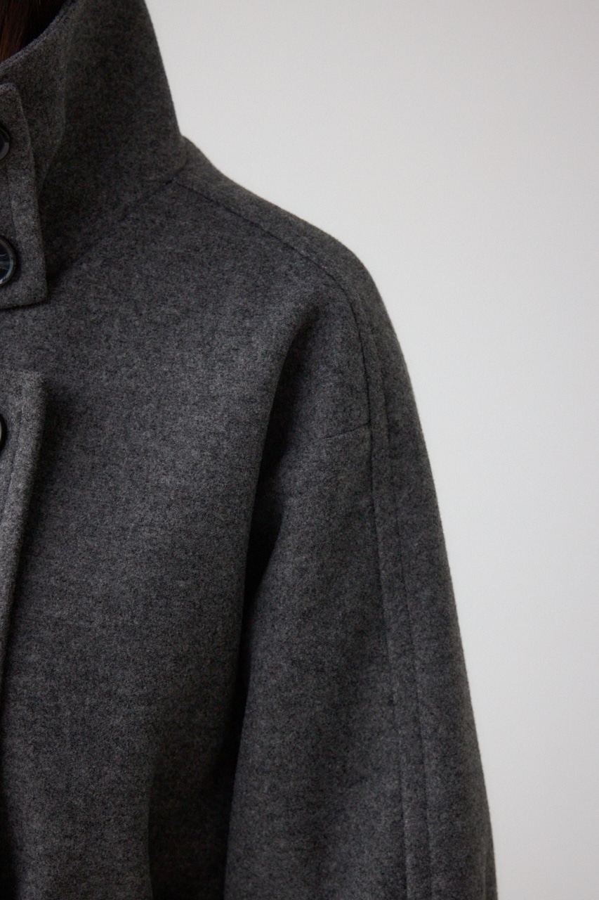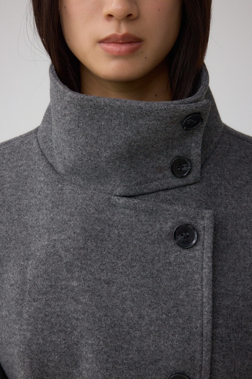 前をしめて襟を立たせると首もとをあたたかく包んでくれるスタンドカラーコート。