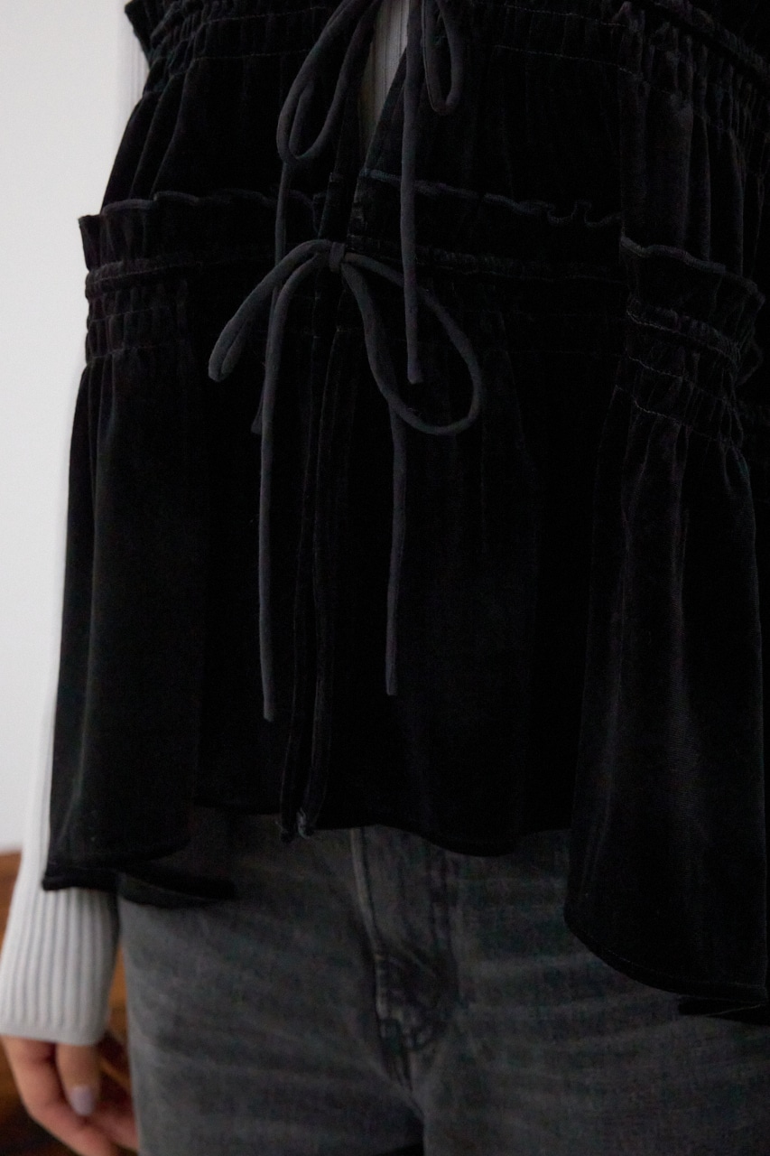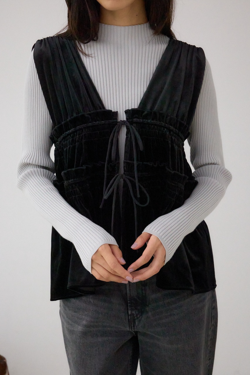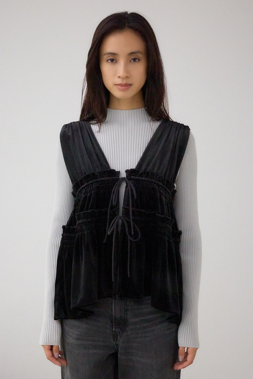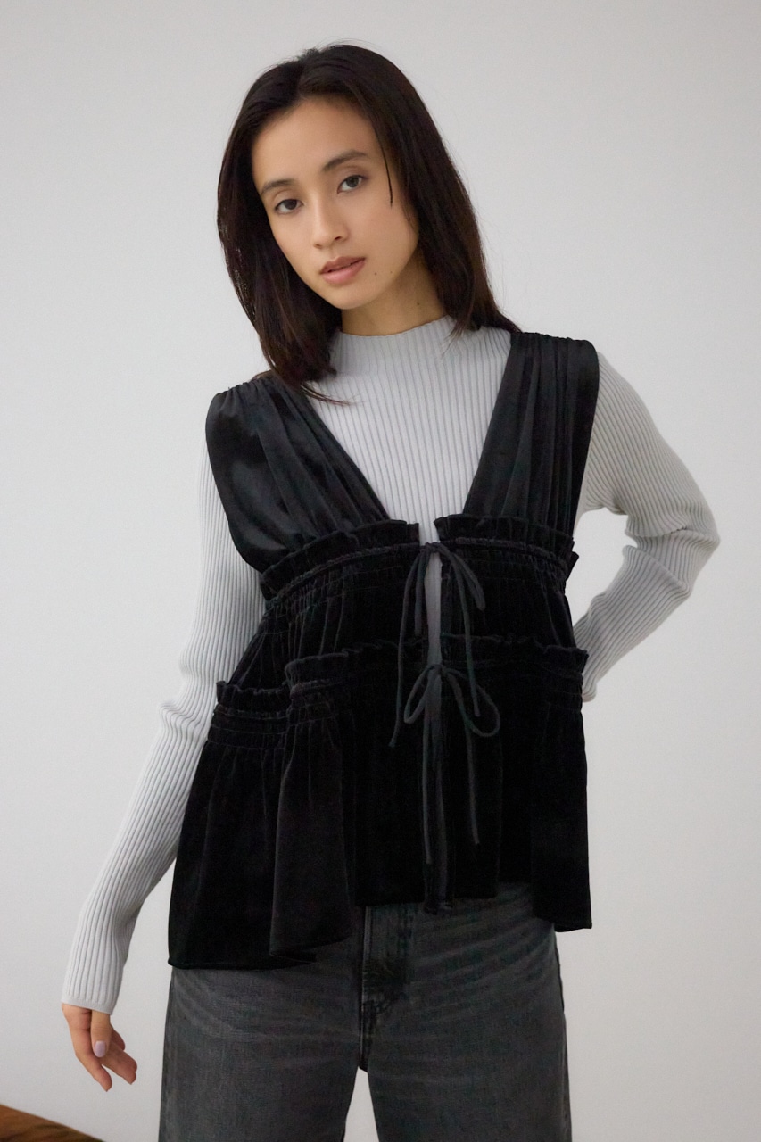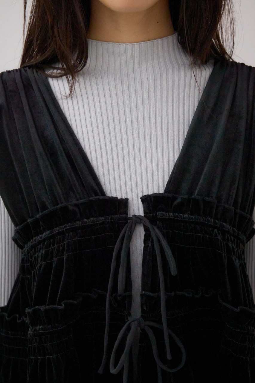 フロントのリボンデザインが今っぽく、Vネックがデコルテを美しく引き立てます。