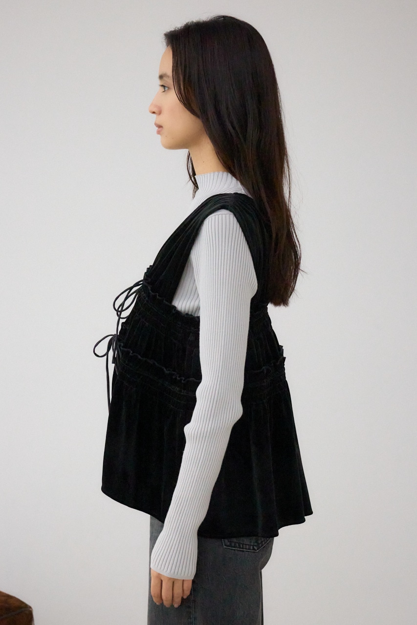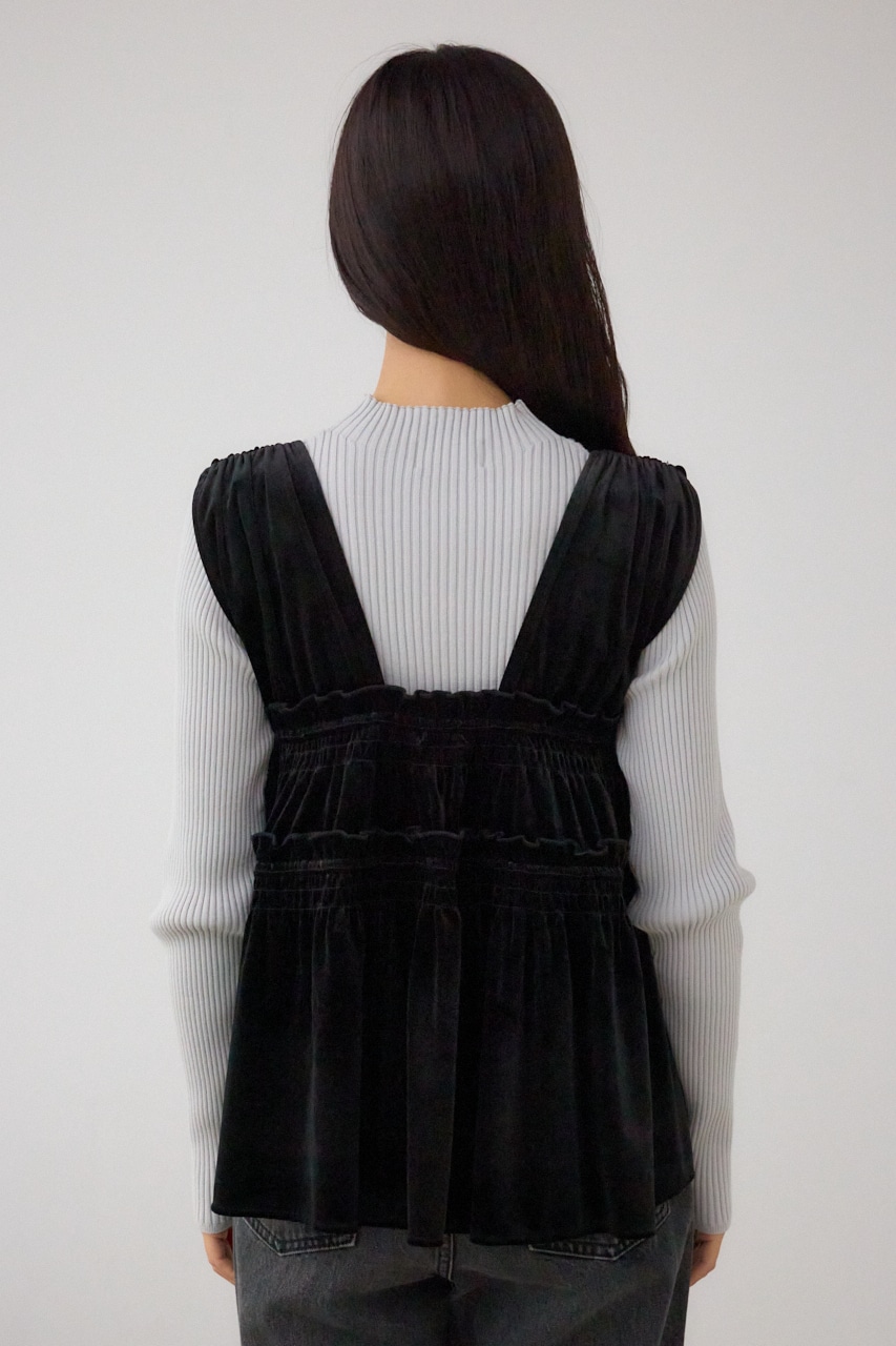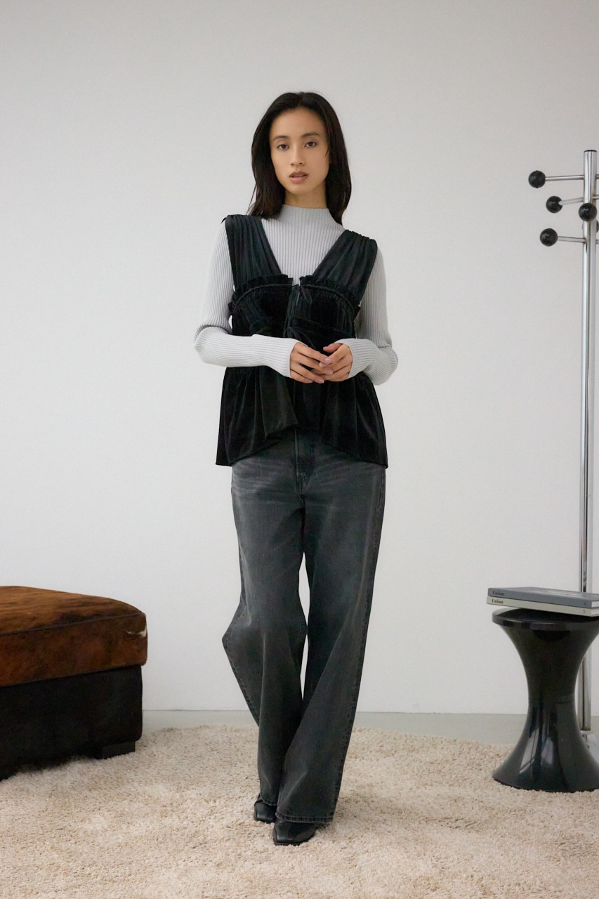 ギャザーデザインが、着こなしに華やかさと上品さをプラスします。