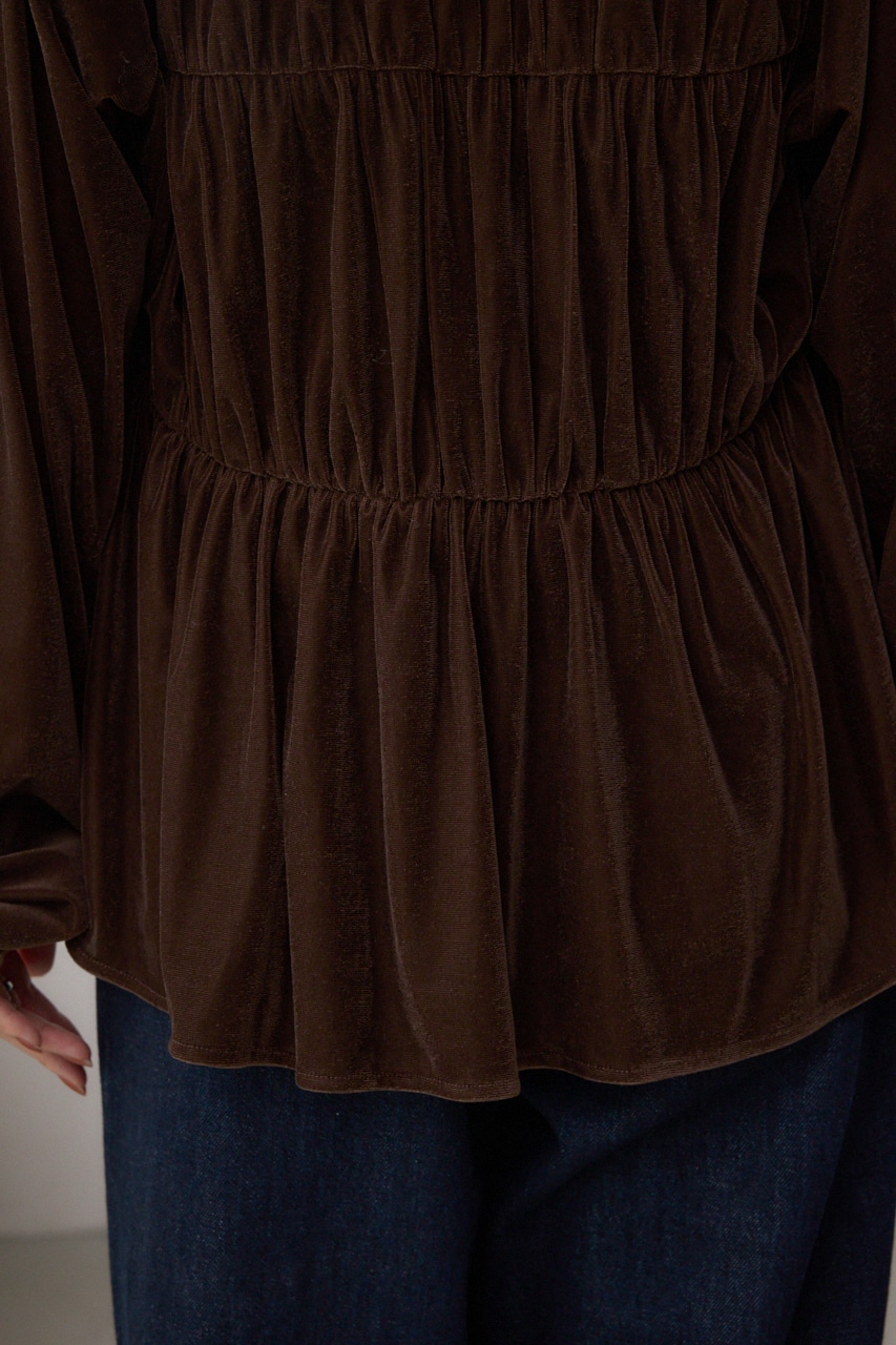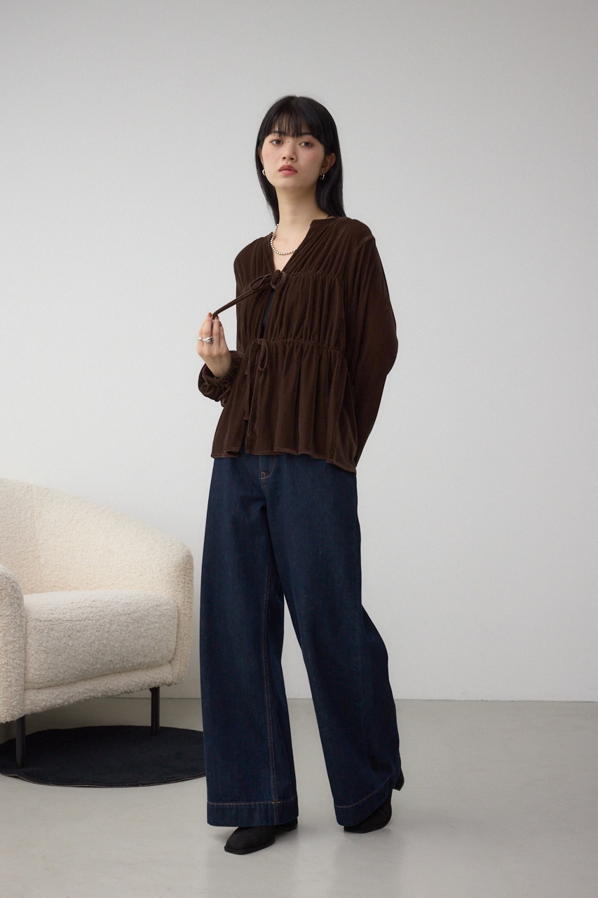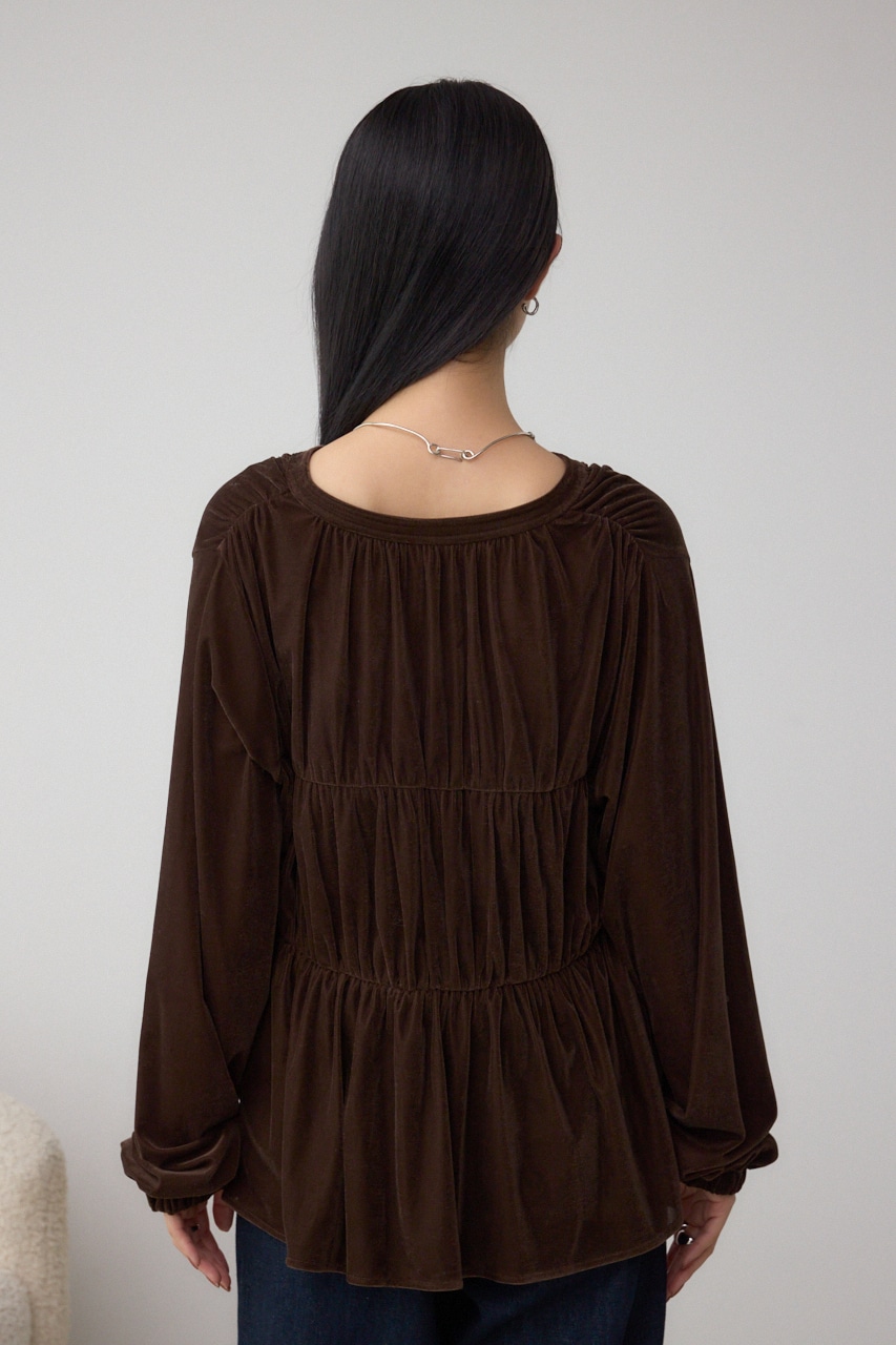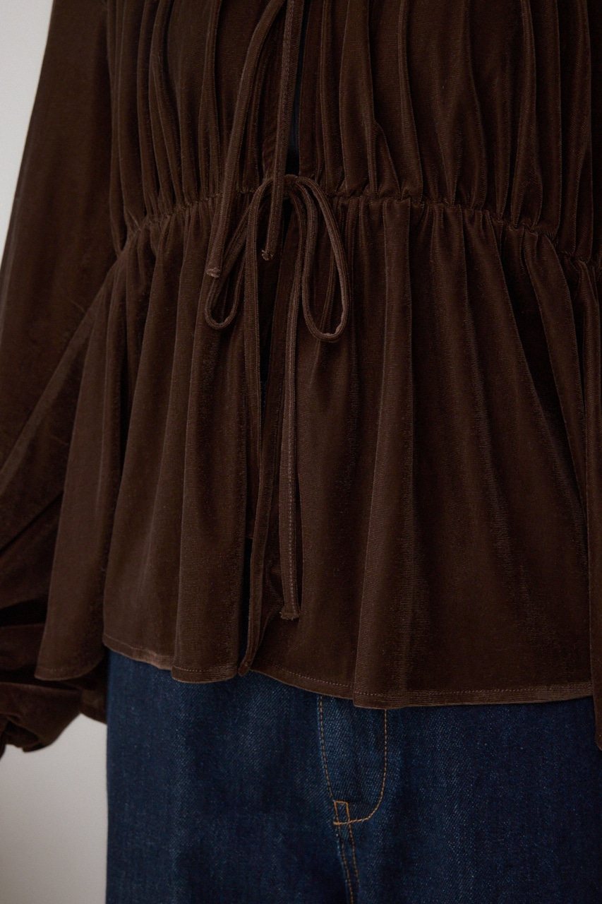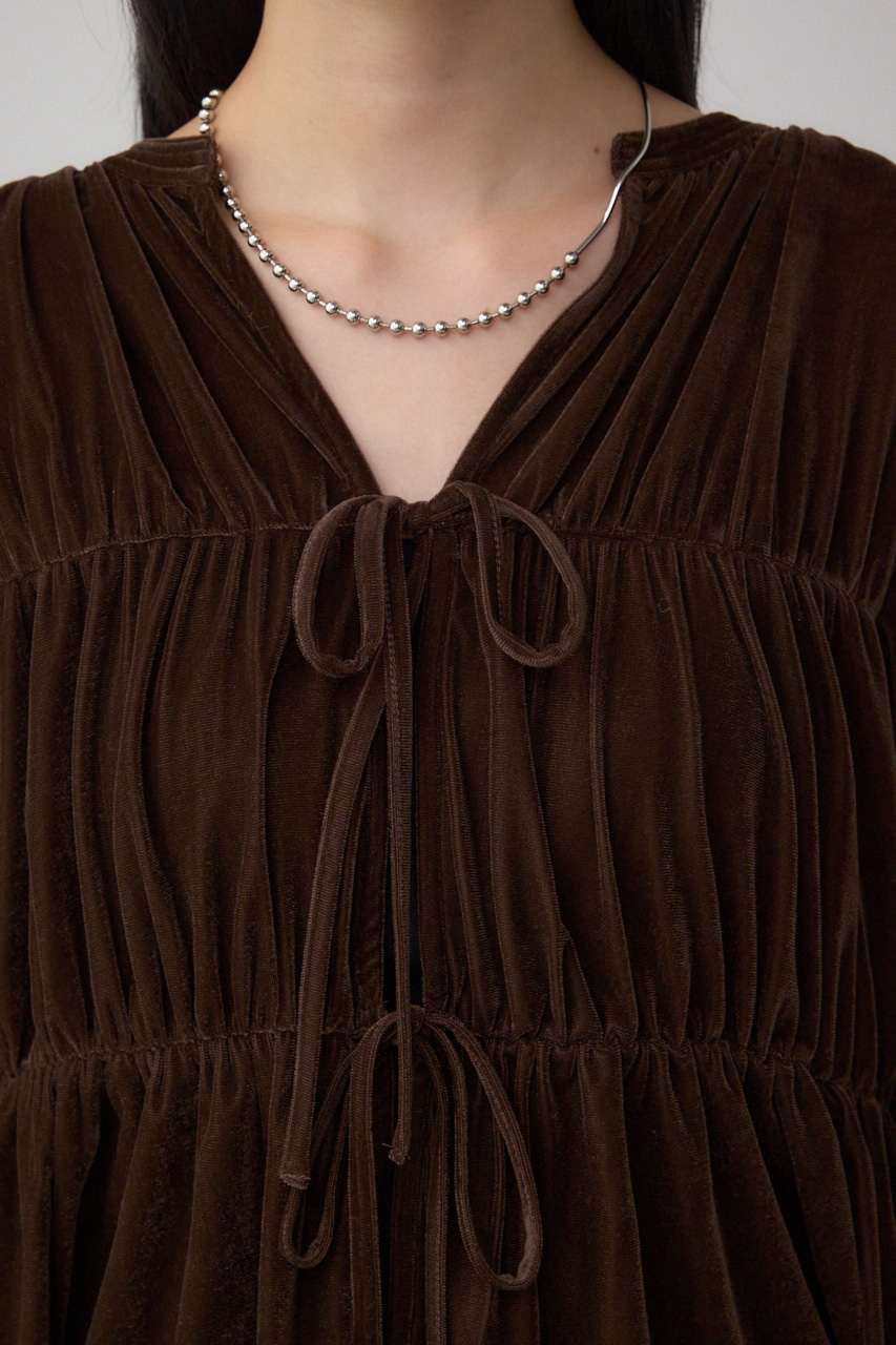 上品な光沢とドレープ感が魅力の、ベロアリボンブラウス。